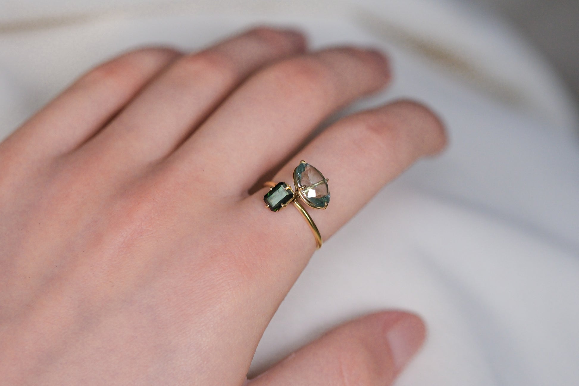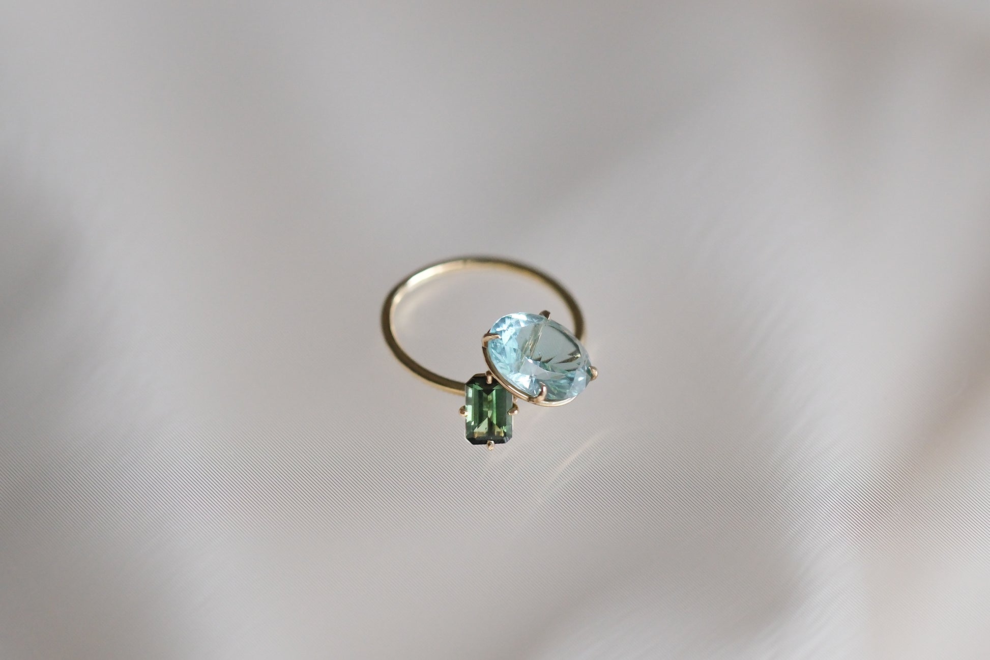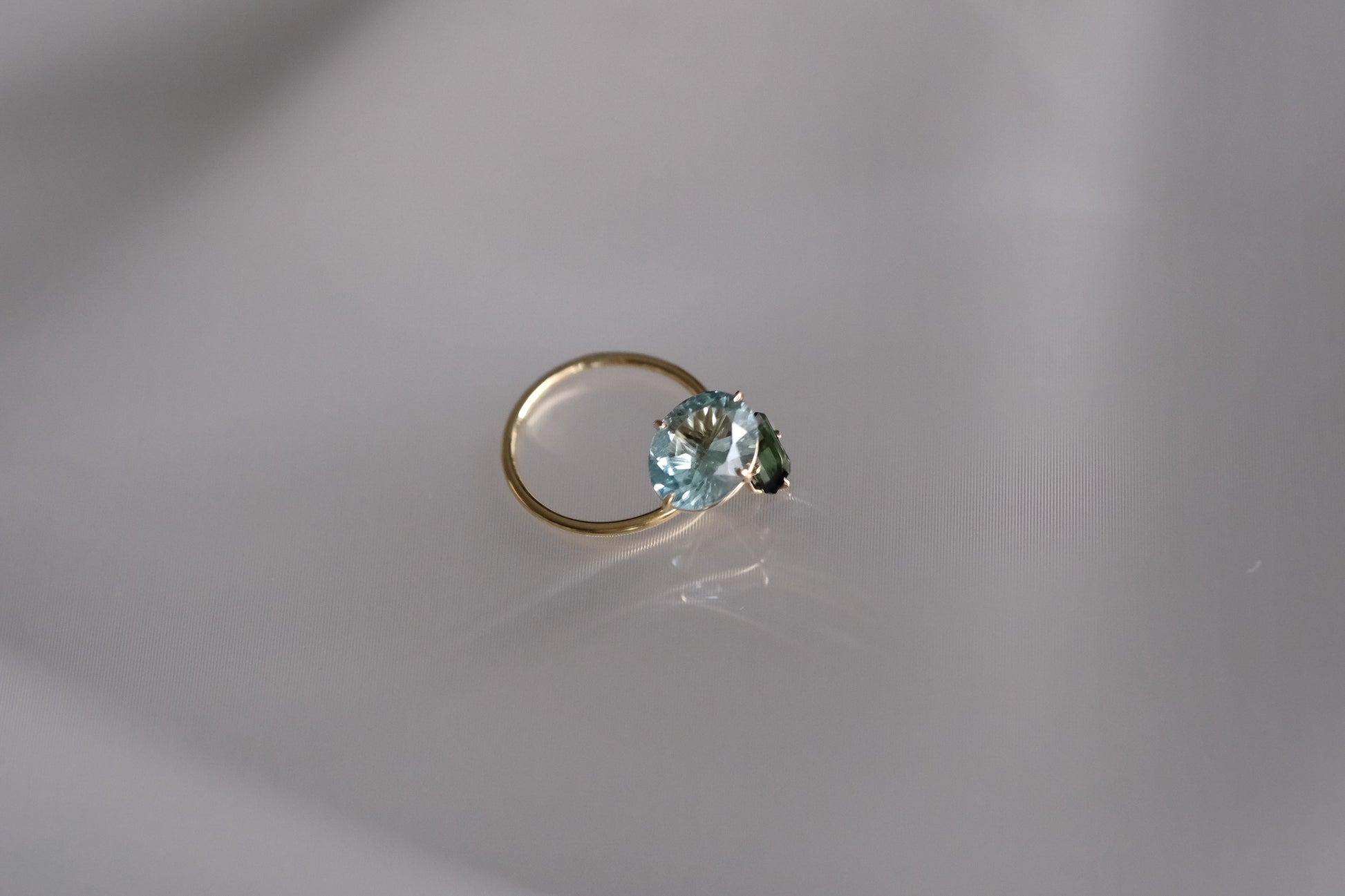 A radiant dance of light and color, this ring from the Pirouette Collection highlights the harmonious pairing of Purple Iolite and Yellow Beryl. Set on an 18k gold band, the gemstones are ingeniously designed to move gently, capturing the beauty of fluid motion and creating a kaleidoscope of hues as they shift and glimmer.