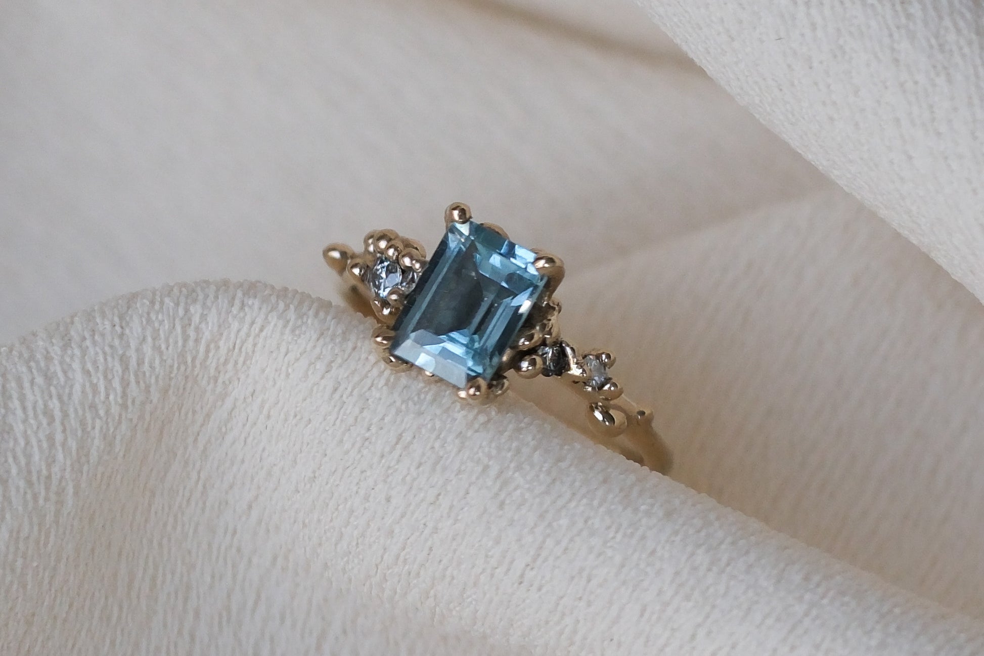 Material: 1.2ct aquamarine, diamonds with 18K white gold
