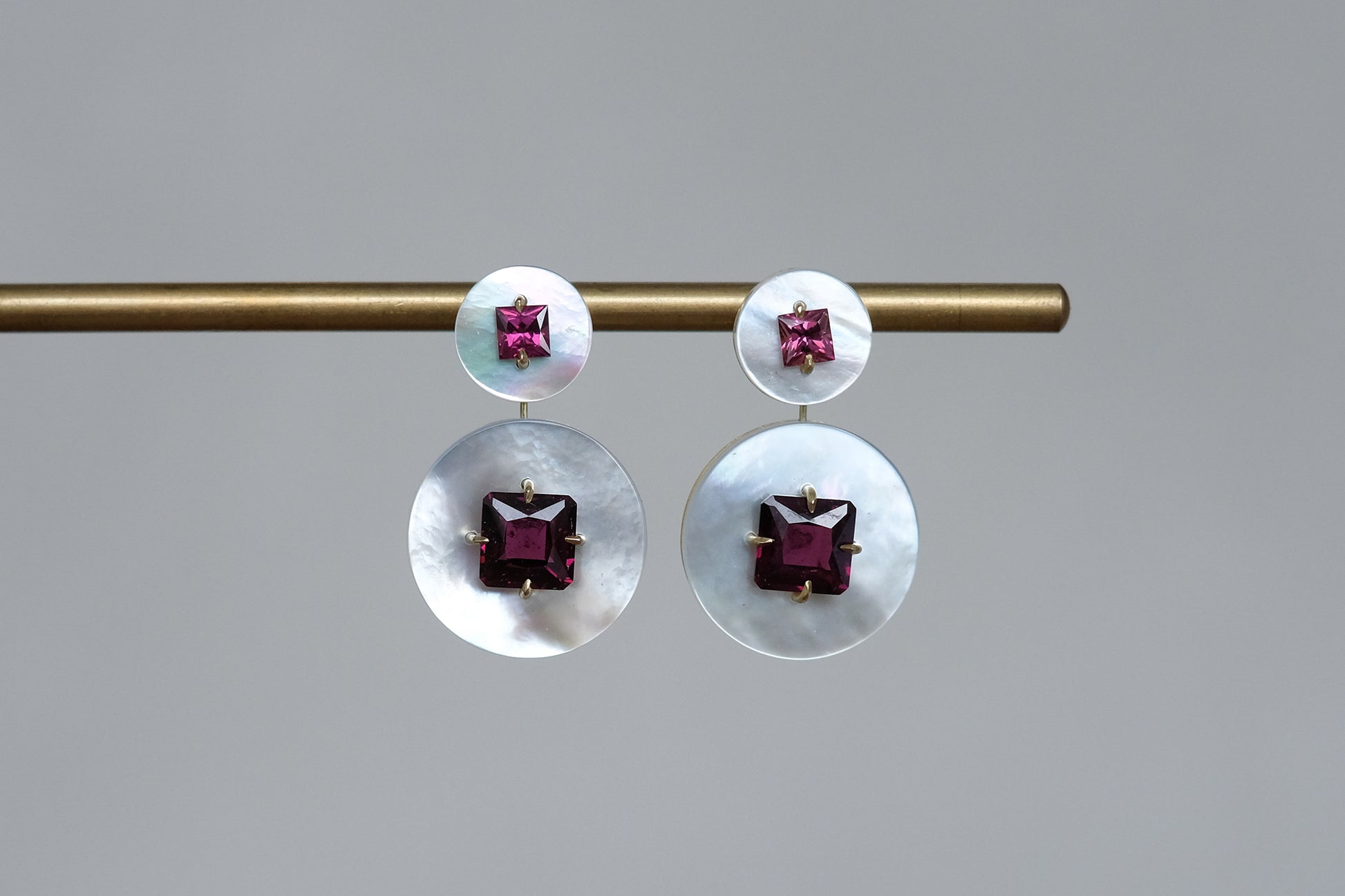 With a princess-cut burgundy tourmaline and garnet seated upon a mother-of-pearl canvas, this piece breaks all conventions of stone-setting and took as its foundation a sheer appreciation for precious gems, simultaneously flaunting an adamantine lustre and the silky pearlescent glow.