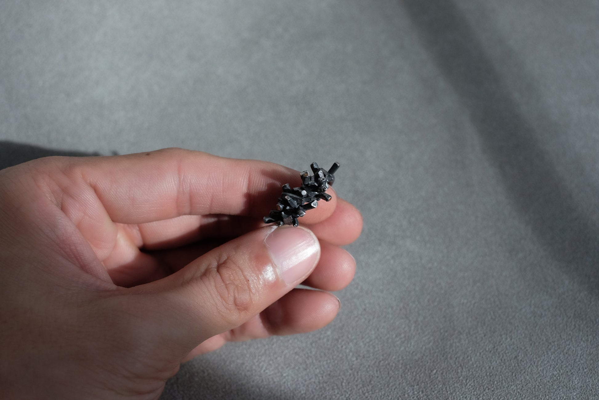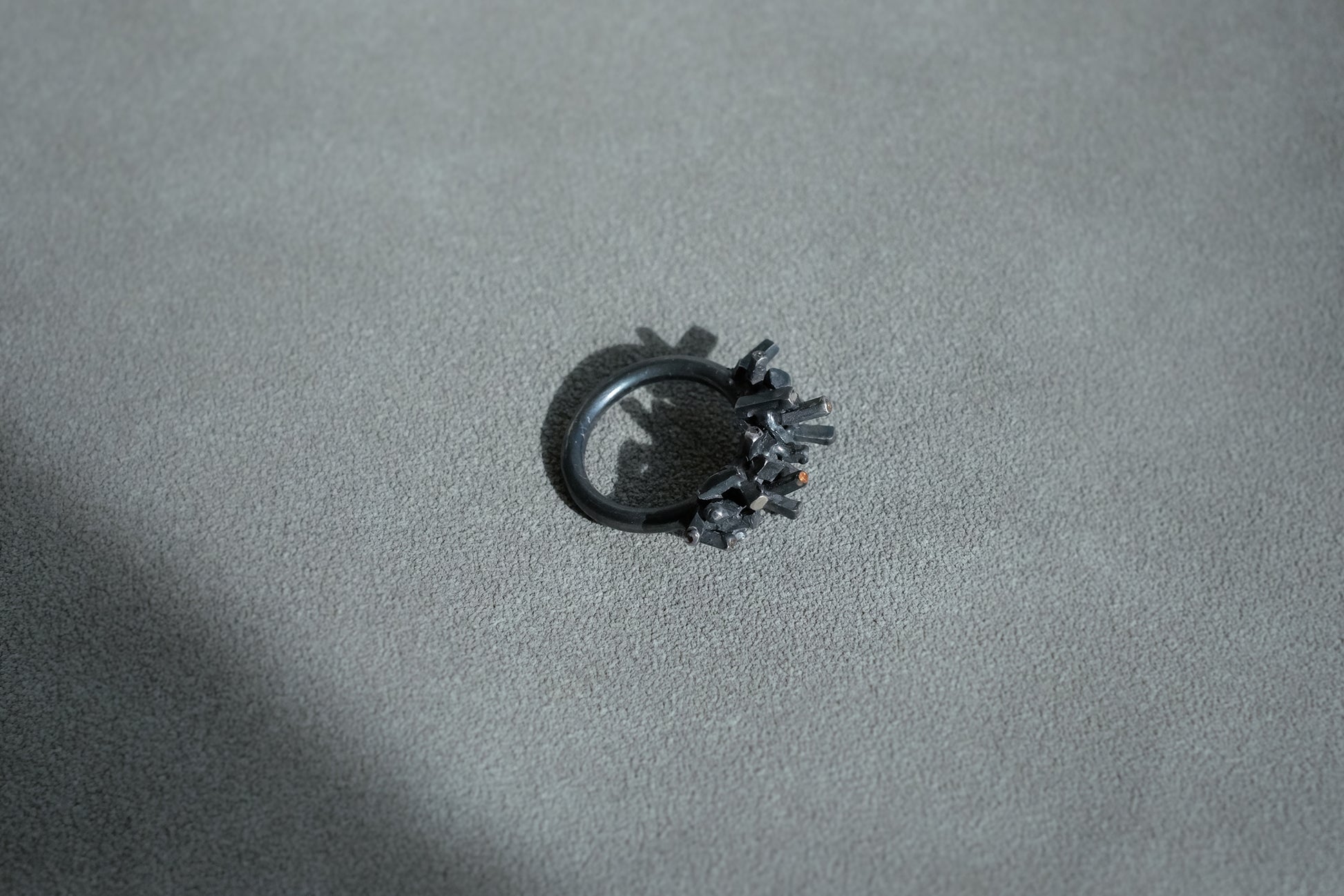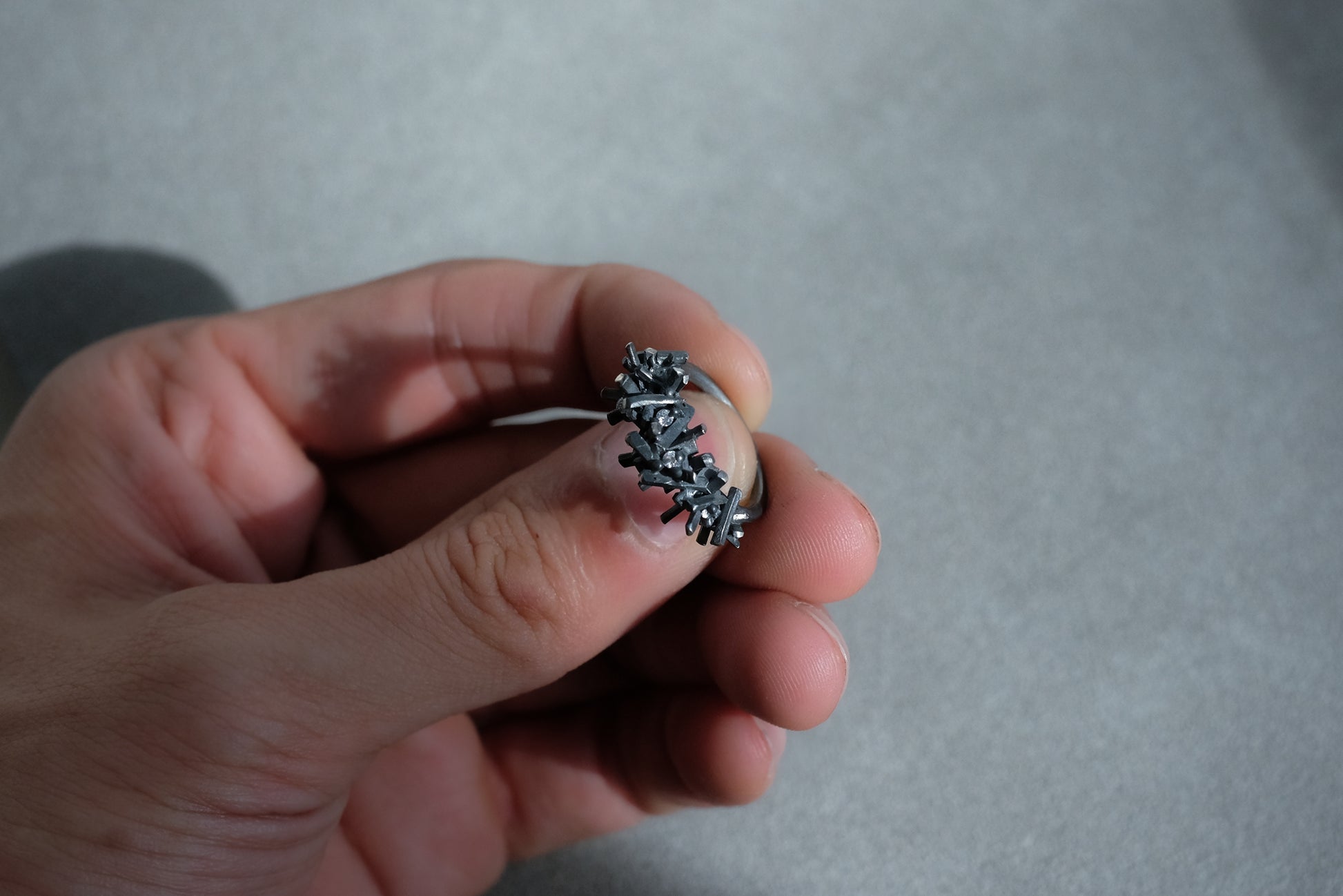 This piece is ready to ship in US sizes 4 1/2 and 5 in oxidised sterling silver. If you want to talk to us before purchase, feel free to contact us via info@belindachangjewellery.com