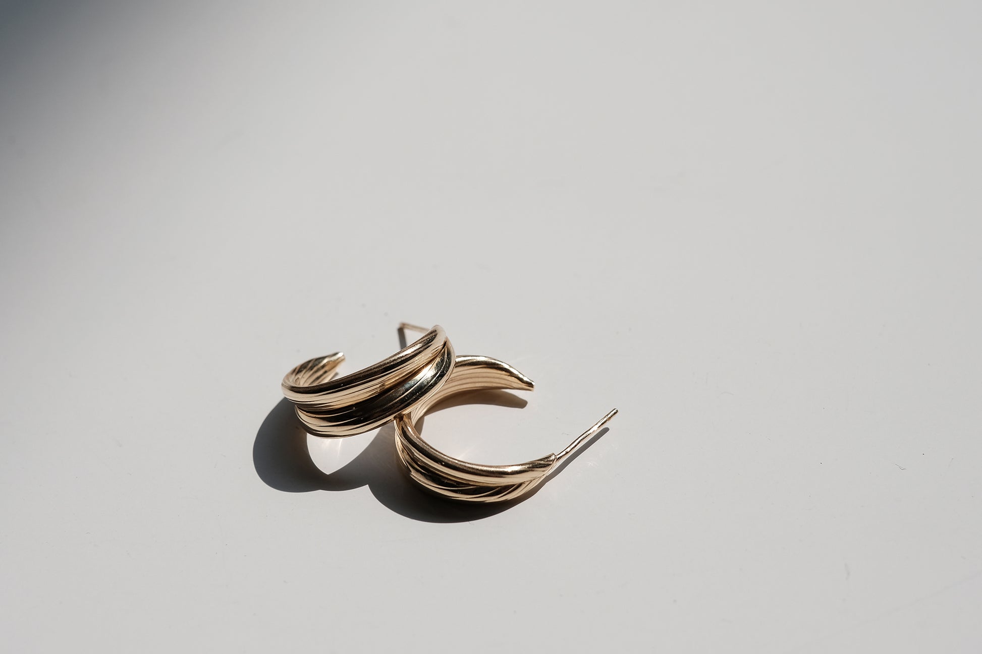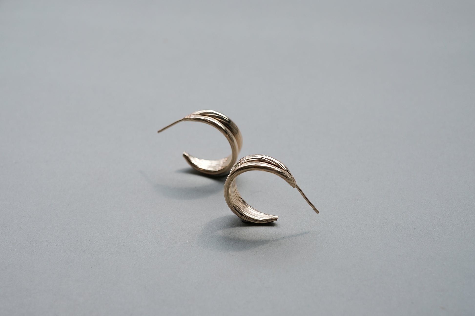 Luxuriant and minimal, this beauty remains reticent with its endearing connotations. The earring's dynamic silhouette and hand fabricated patterns lends versatility to its appeal, yet the secretive heart-shaped profile is visible only when viewing from its side.