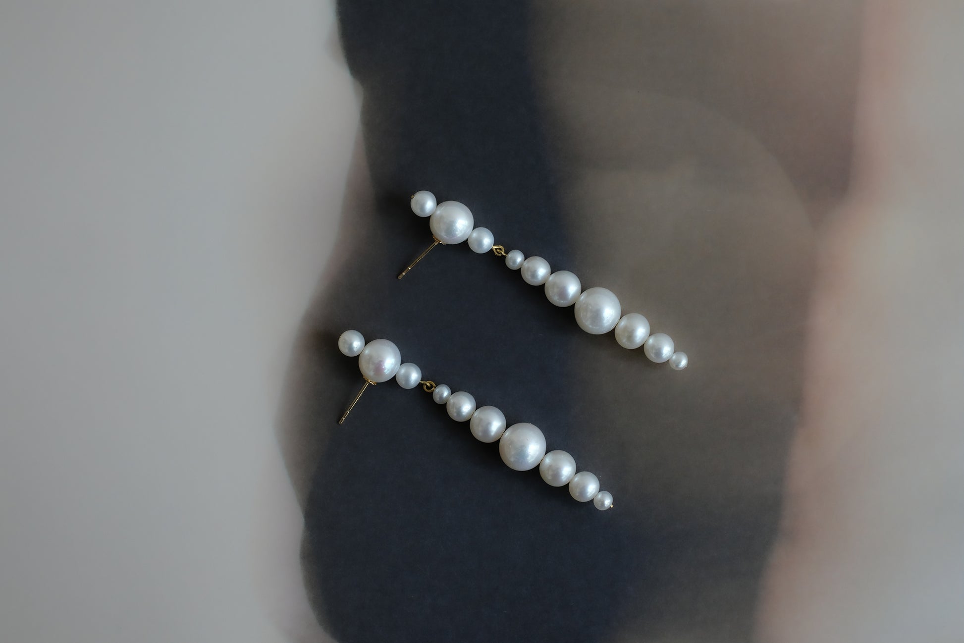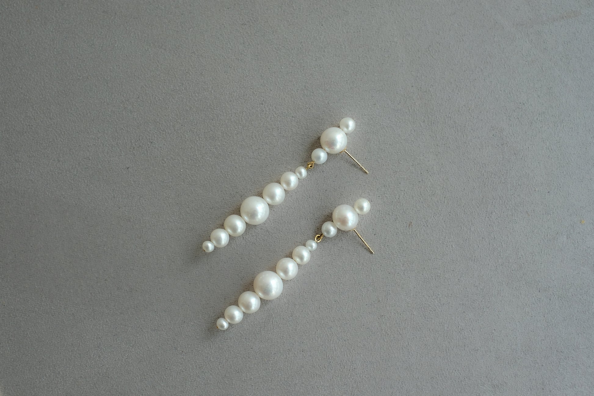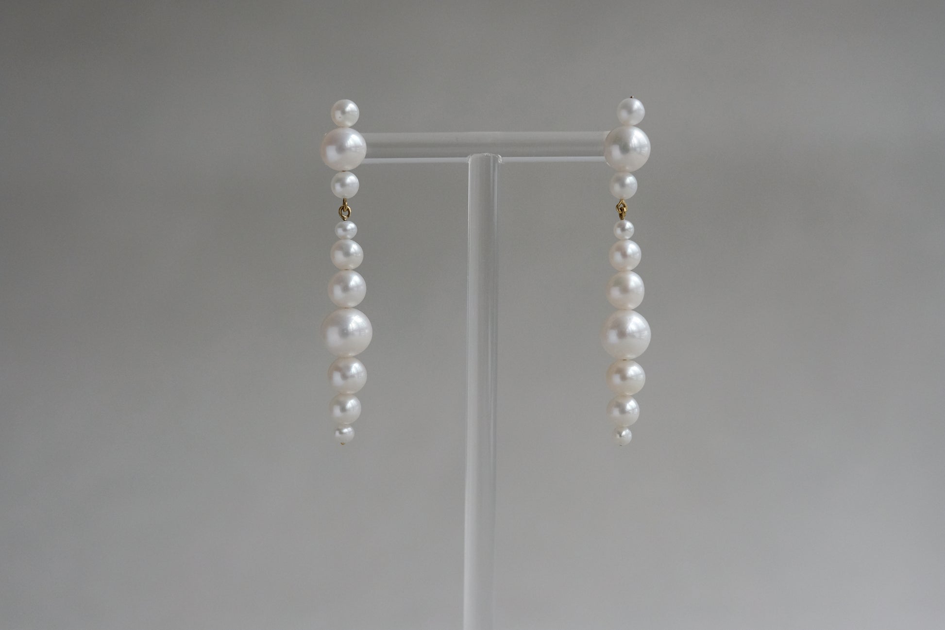 Versed in 18k gold and fresh water pearls, all eyes are drawn to the gradating curves on the string of pearls.