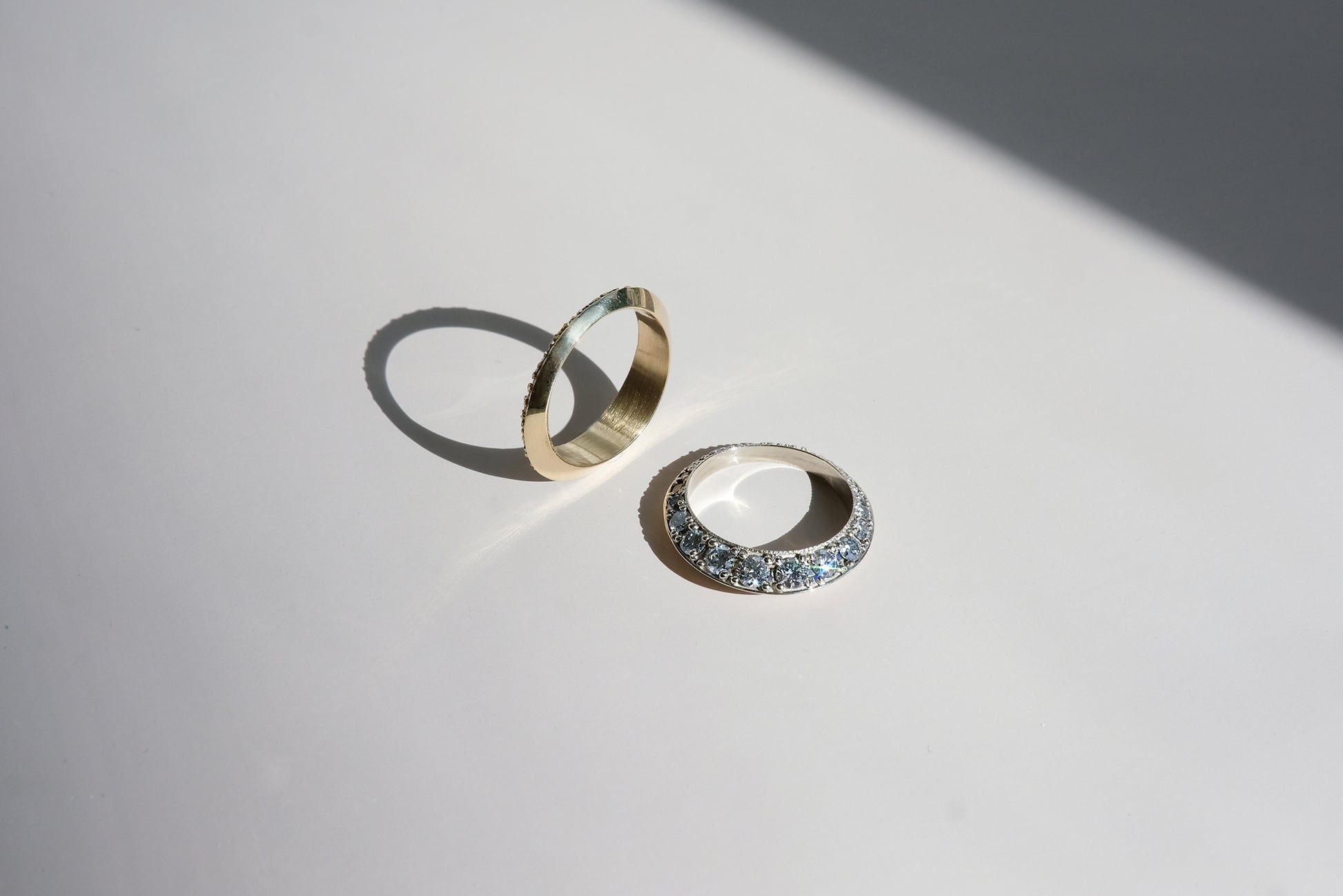 This piece ships immediately in 18k Yellow Gold with natural diamonds in size US 6 1/4 and 18k White Gold with lab grown diamonds in size US 6 1/4. Please allow one to two weeks for ordering other size. if you want to talk to us before purchase, feel free to contact us via info@belindachangjewellery.com