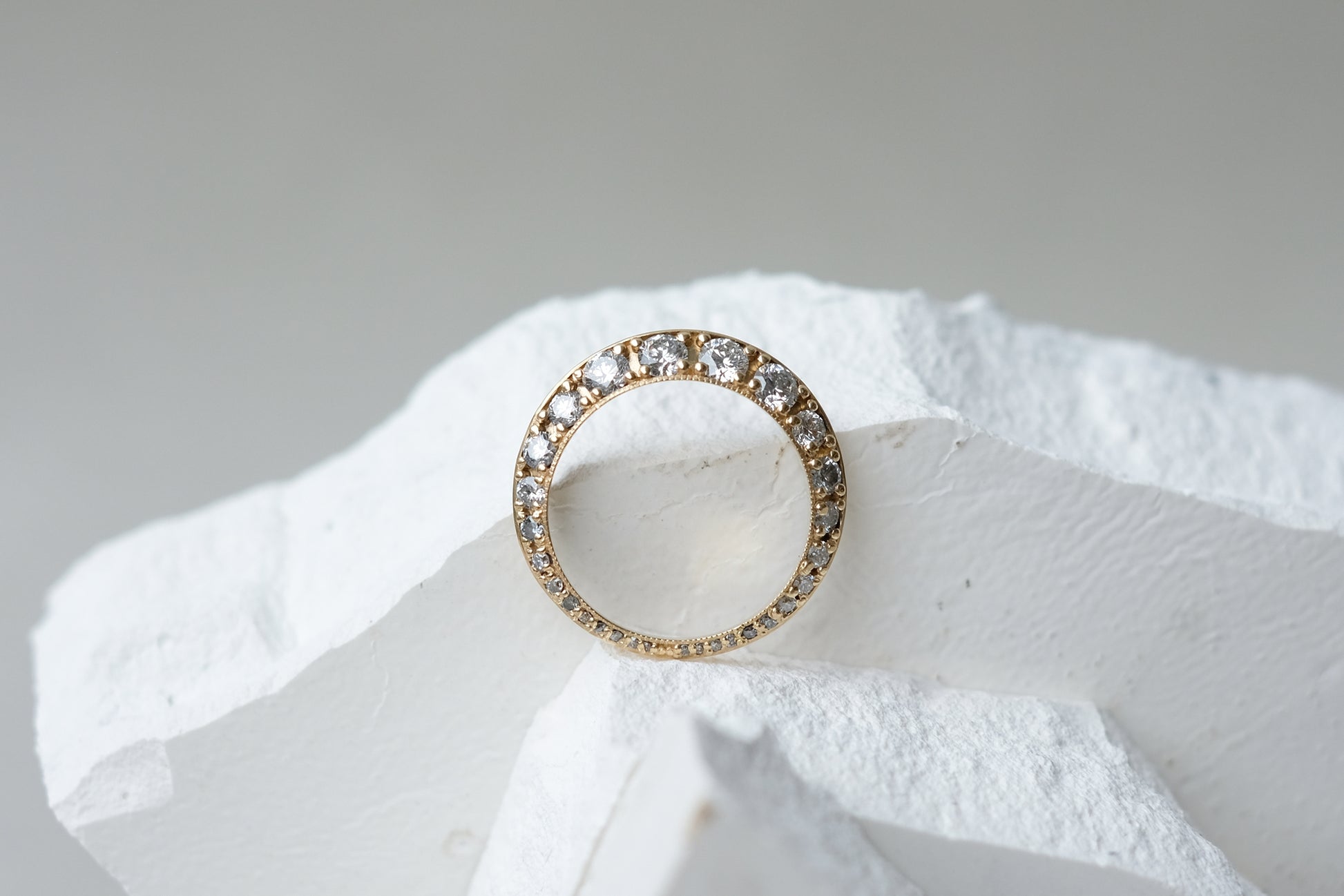 Inspired by the captivating allure of the moon, the Diamond Crescent Ring lavishly transforms the moon's silhouette into an enchanting design. Adorned with around 1.31 ct of diamonds, it glimmers like the stars in the night sky, while the other side remains elegantly plain. Embrace the versatility of this ring, as it can be worn in two ways, showcasing different forms of beauty, much like the ever-changing moon.