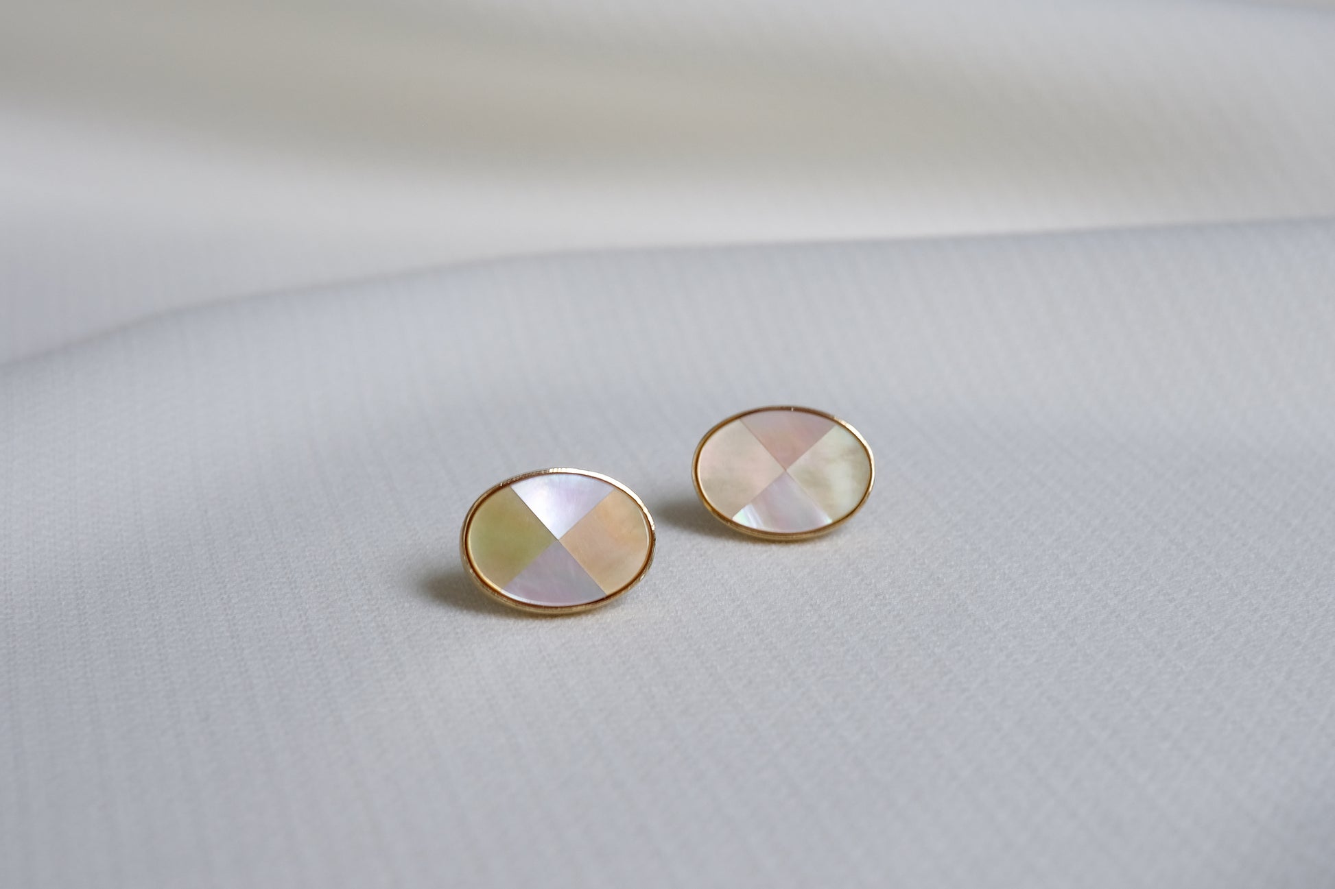 The soft lustre of mother of pearl gives this collection its signature charisma. Set on 18k gold frames, the finely polished nacre gems give off a dreamy iridescence.