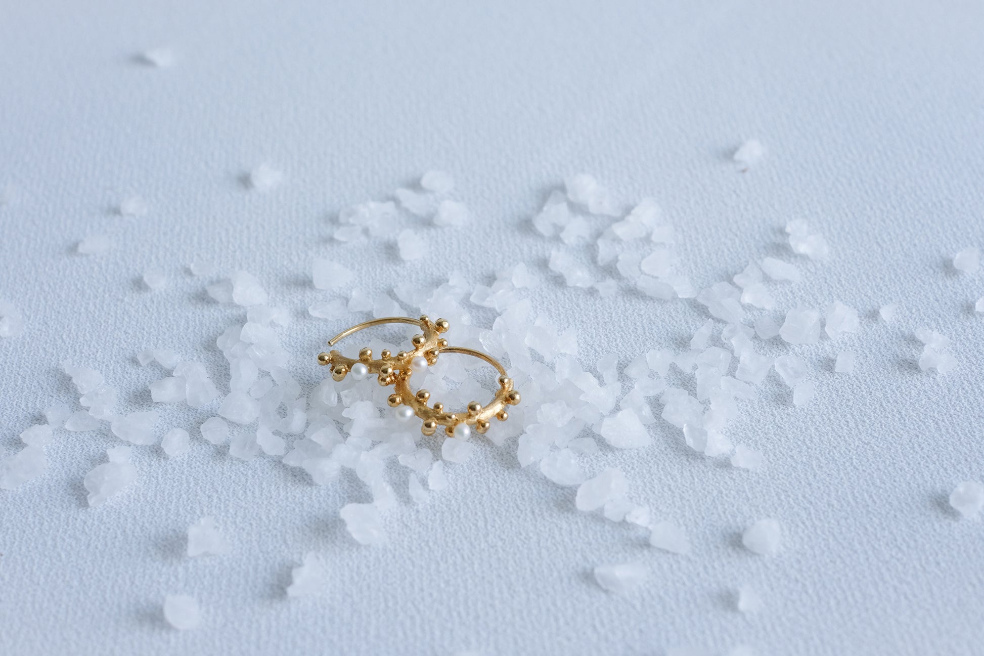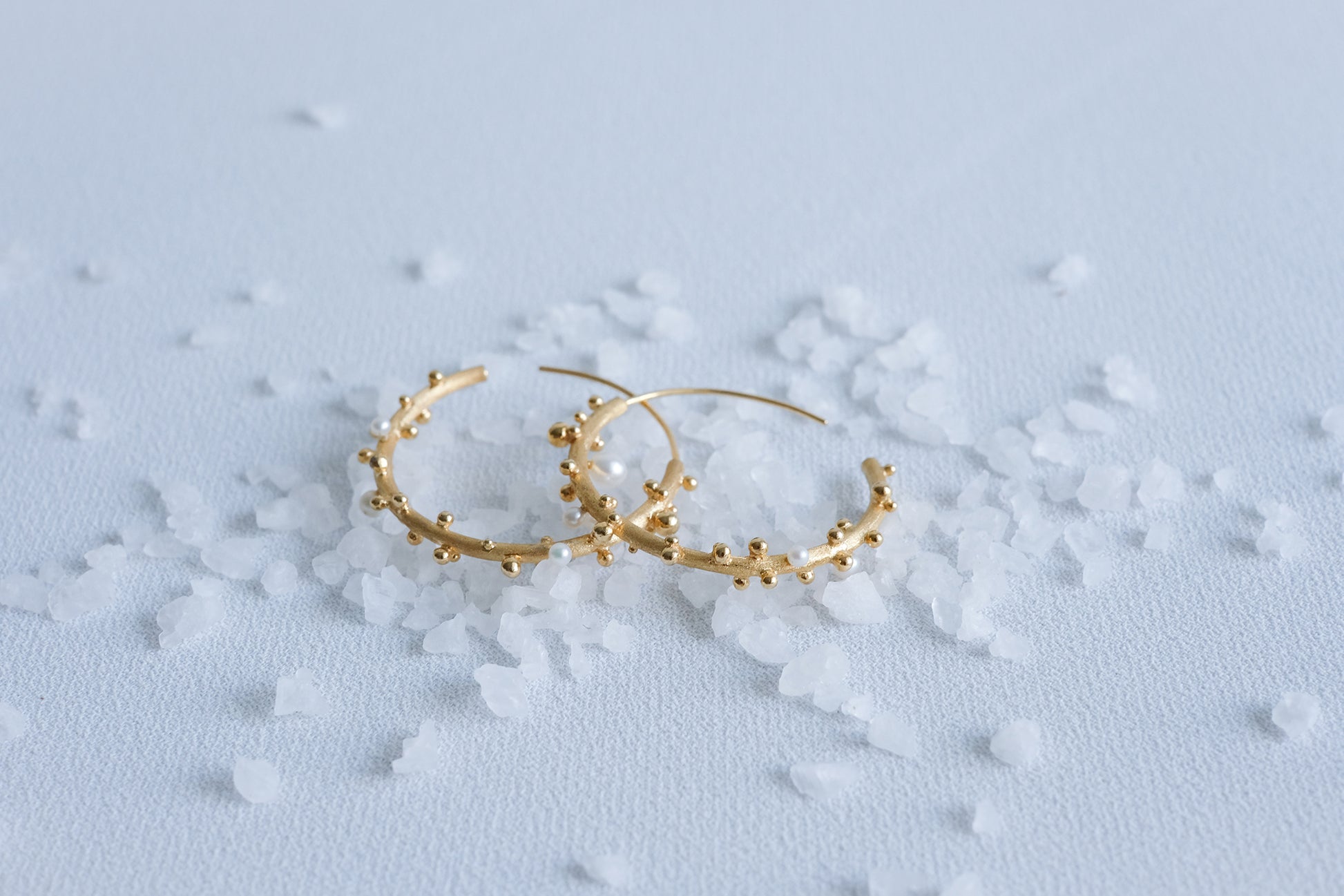 With lustrous gold pearls strung to a hoop of gold, Belinda Chang translates the wonders of natural world into elegant pieces of wearable art.
