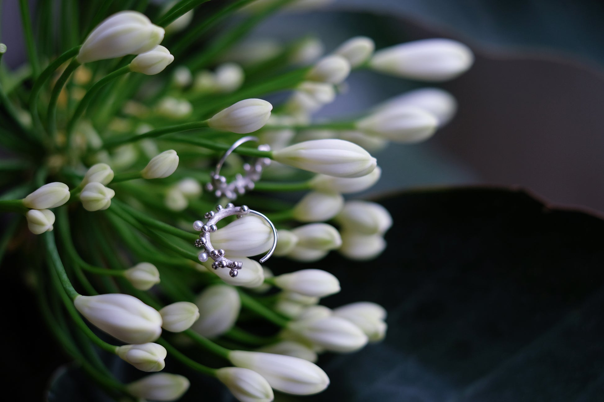 The designer illustrates the sensations and the joys of winter in this collection, Tiny droplets of precious metal are carefully articulated to mimic the frozen drops of morning dew in the winter.