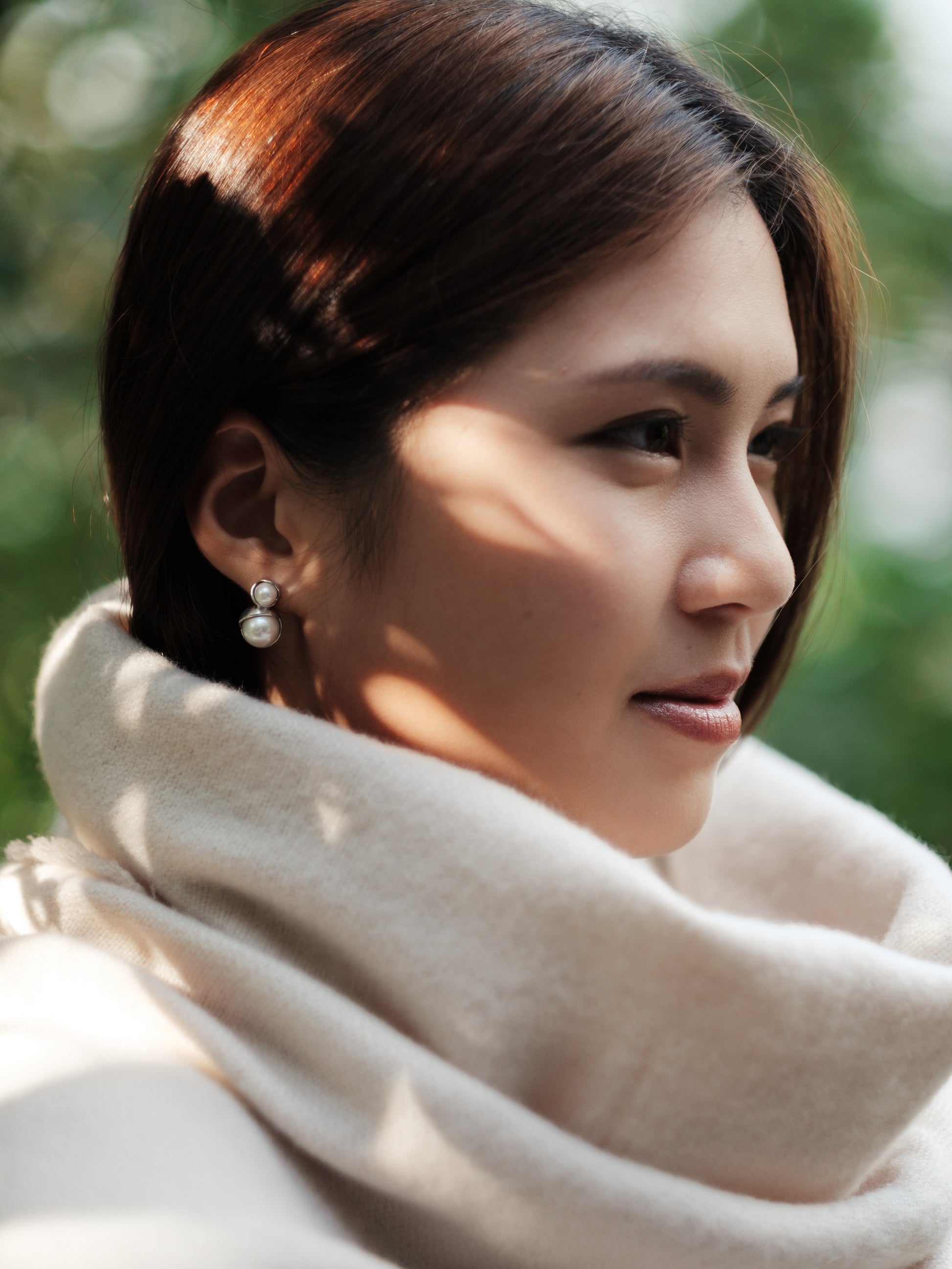 These playful, asymmetrical earrings feature eclipsing pearls encased in 18k White Gold-plated silver. Unrestricted by conventional expectations for visual symmetry, the design embodies contemporary design at its best.