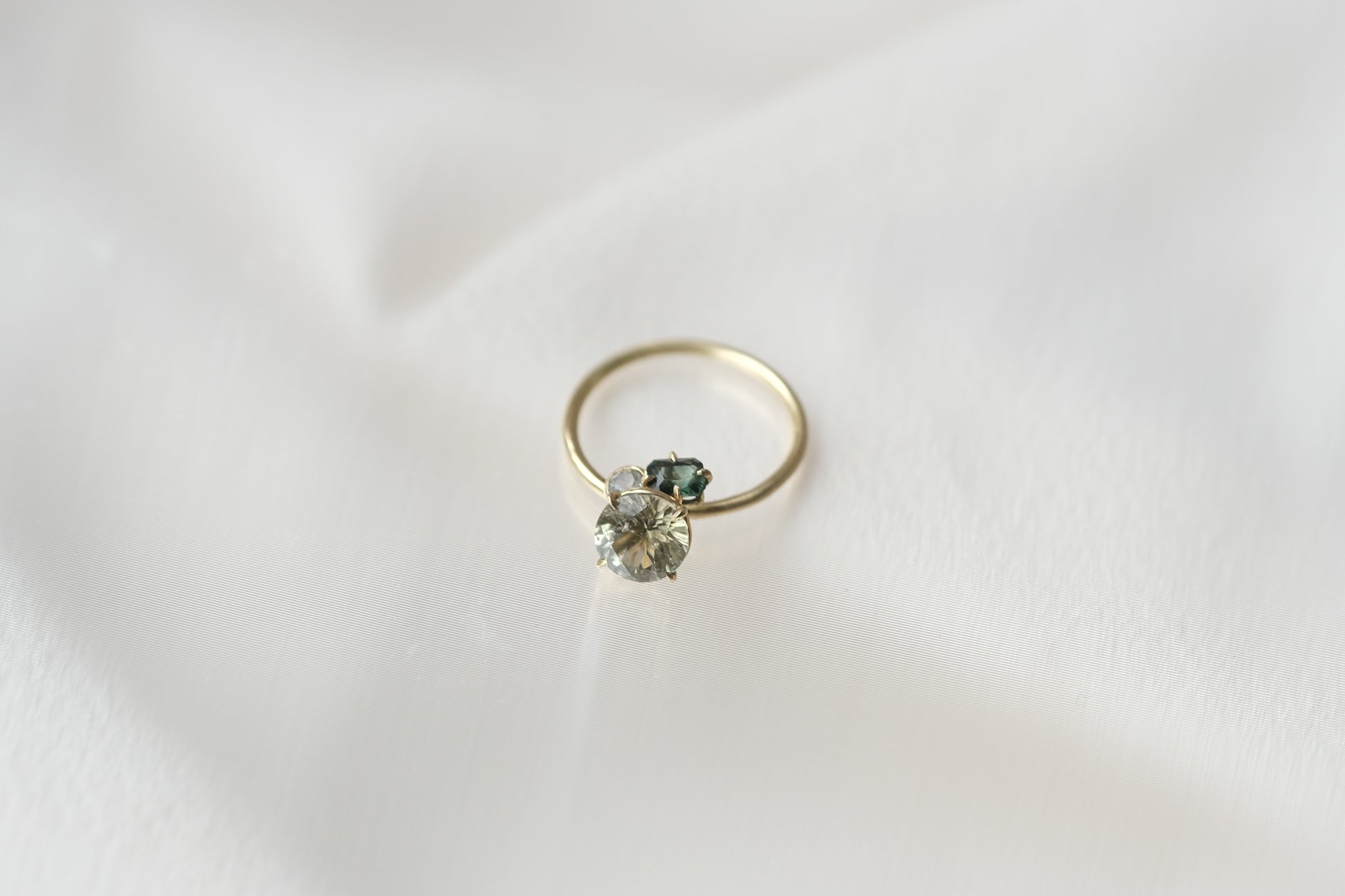 Material: 1.46ct Green Beryl, White Topaz, Tourmaline with 18K yellow gold