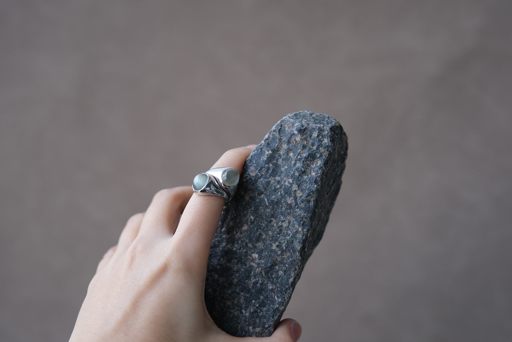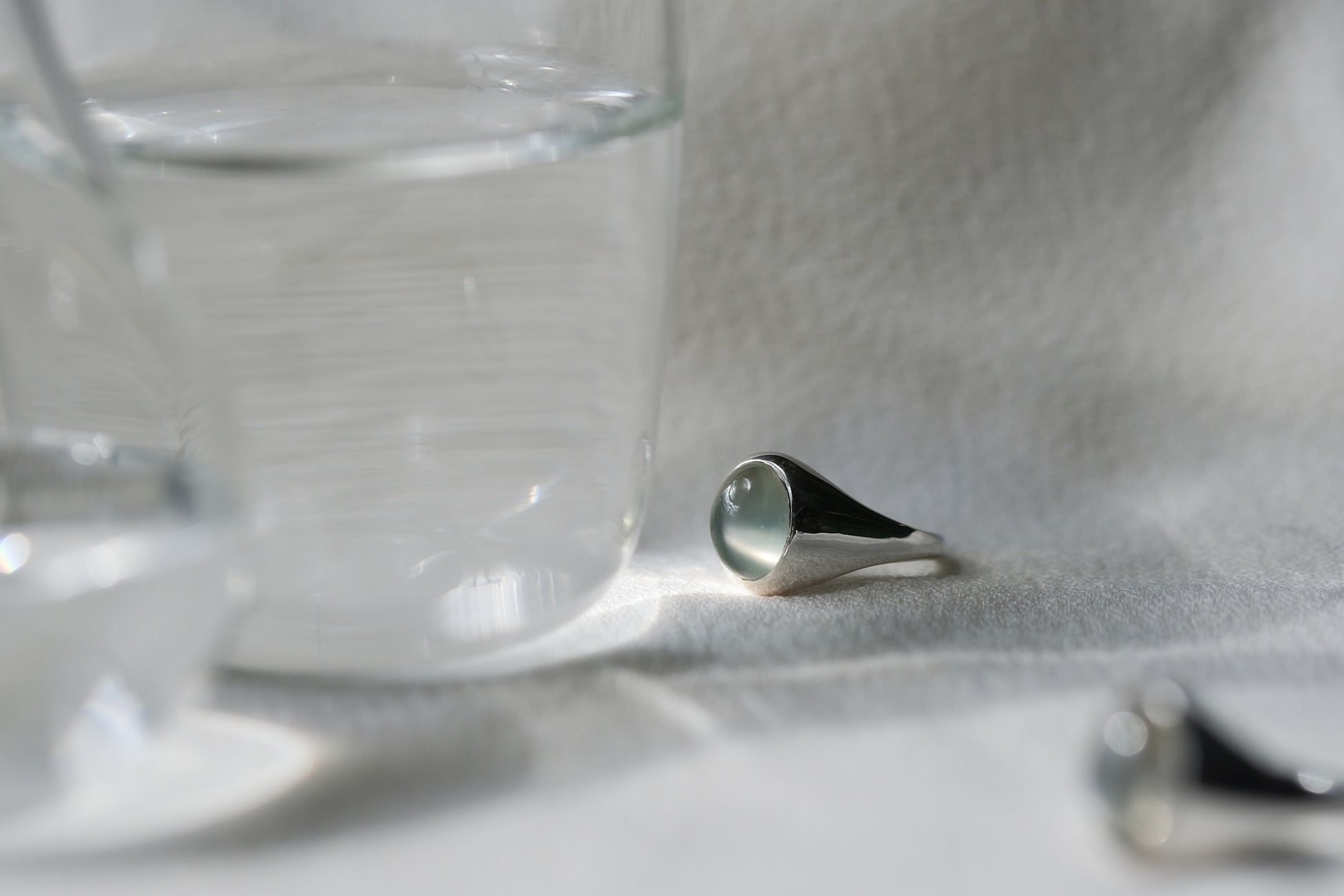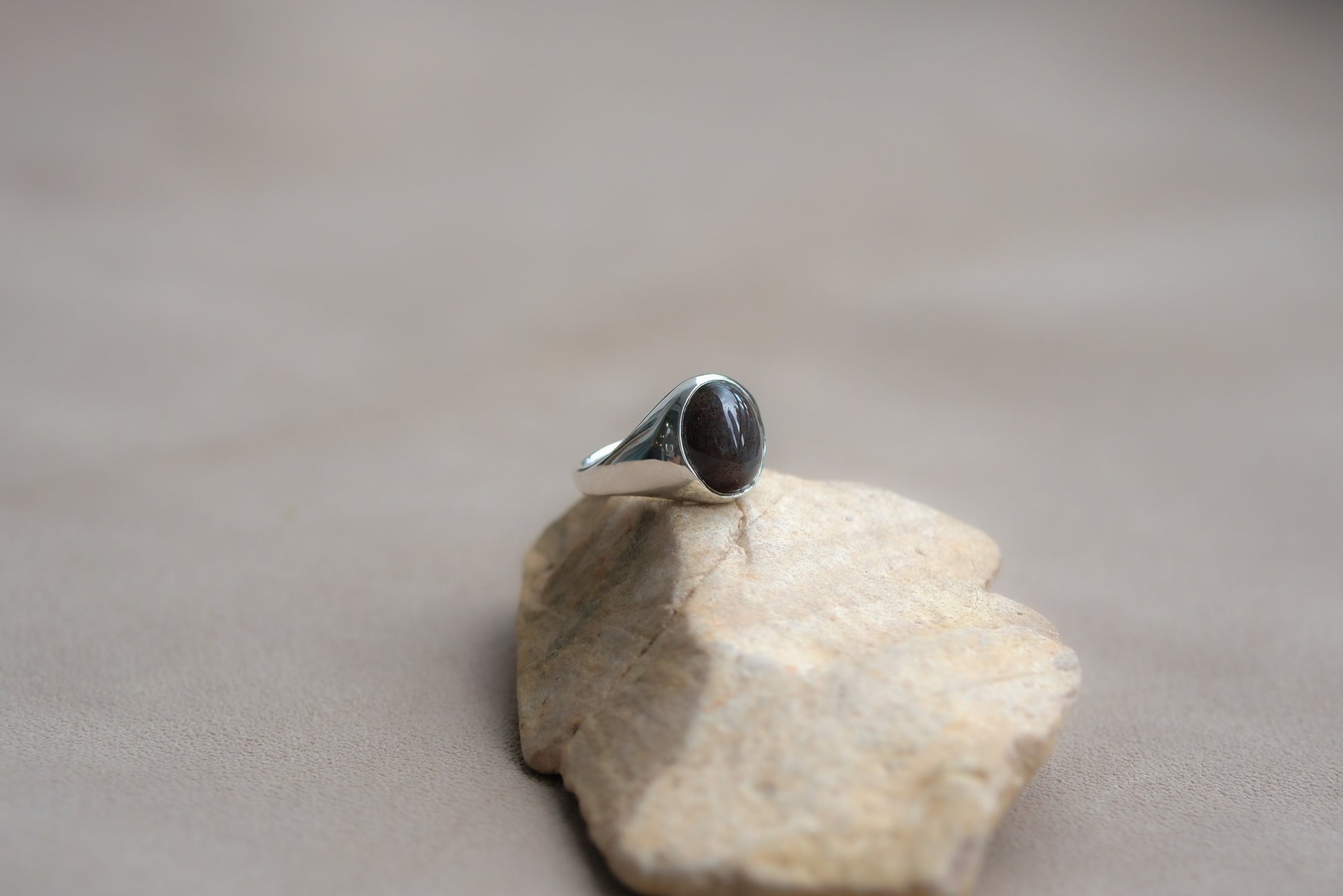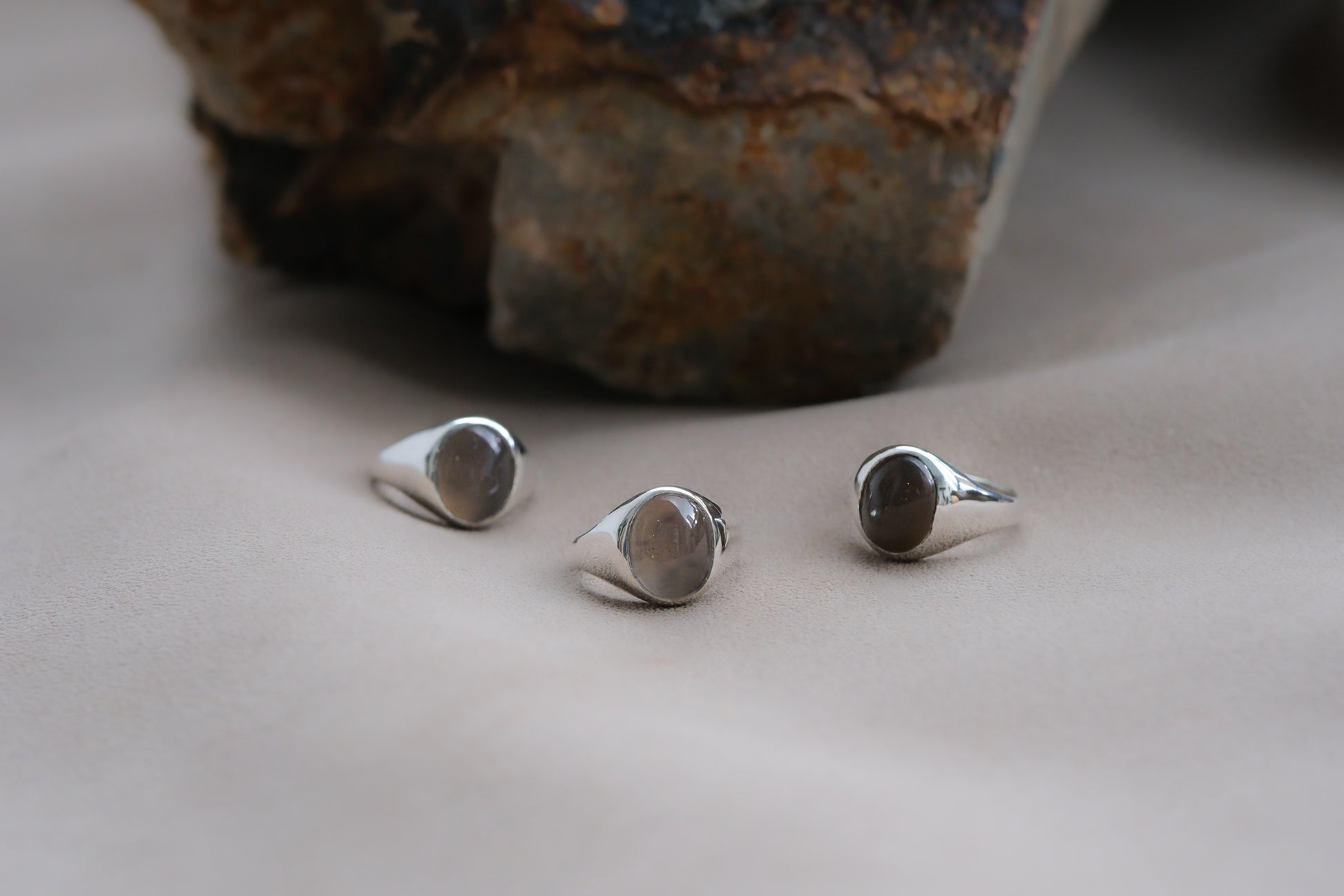 Set upon a signet ring, a gemstone gleams alongside the finely polished surface, accentuating both the natural allure of the gem and the timeless elegance of silver. This piece offers a modern reinterpretation of traditional heirloom jewellery, seamlessly blending classic charm with contemporary sophistication.
