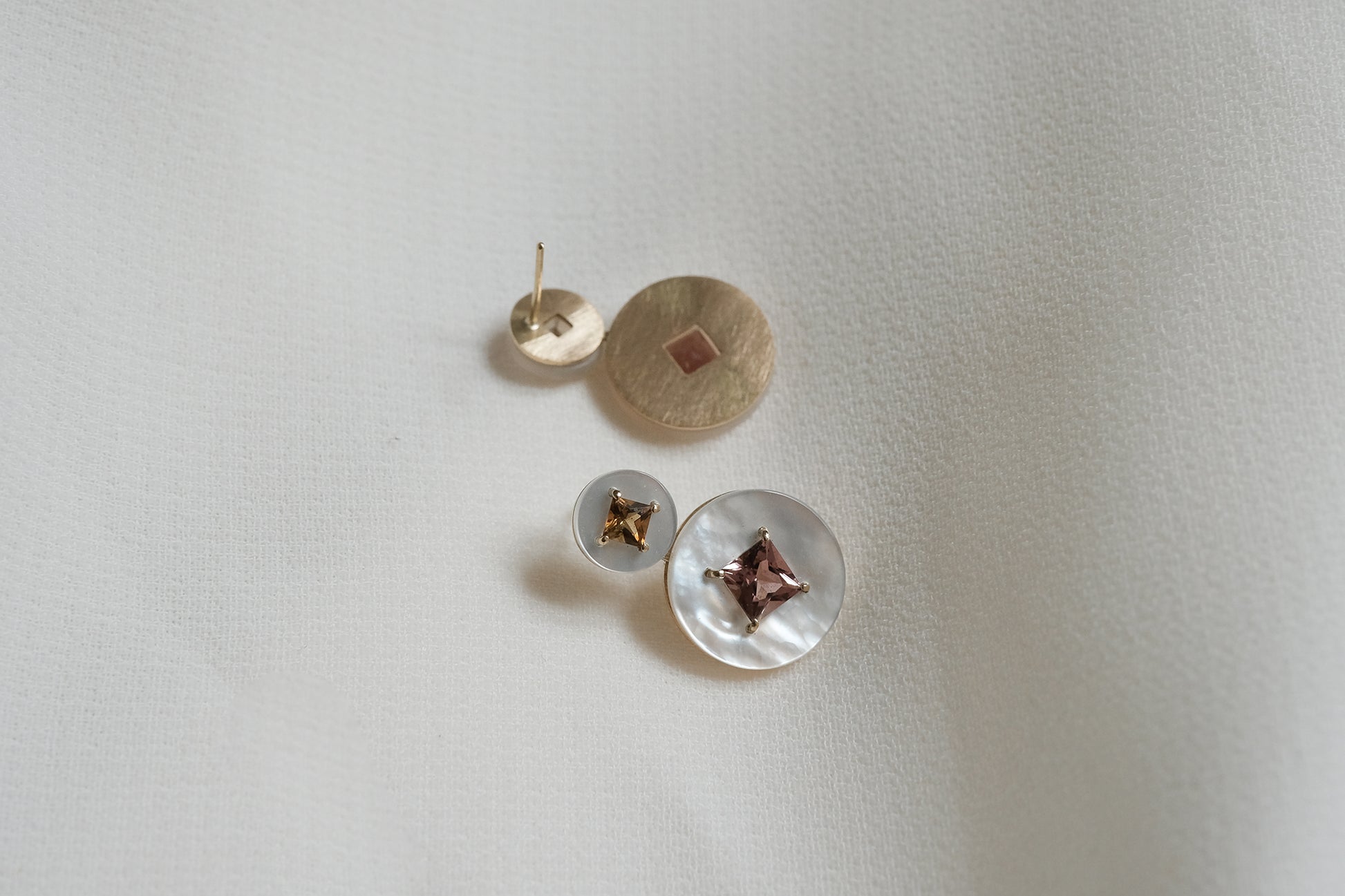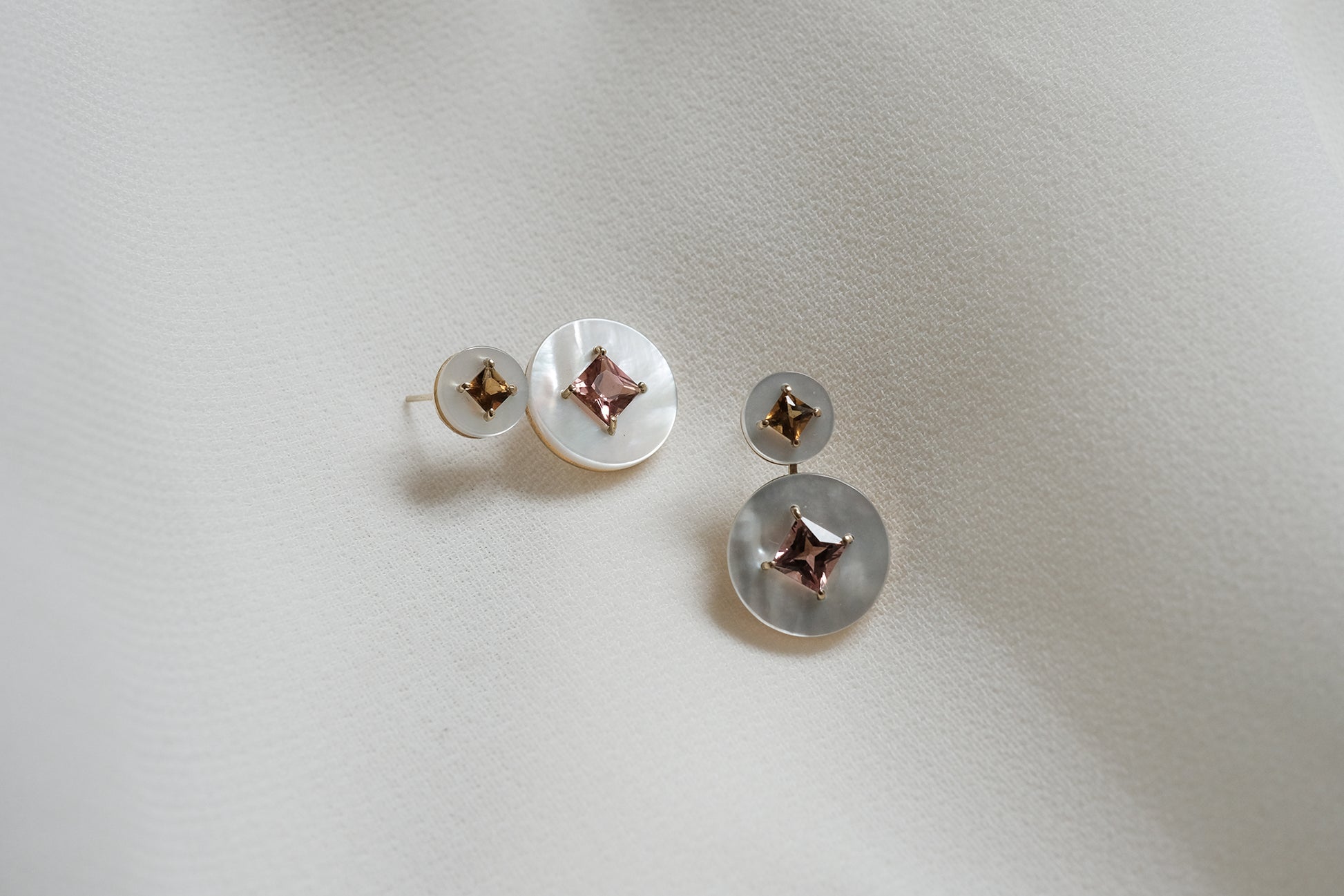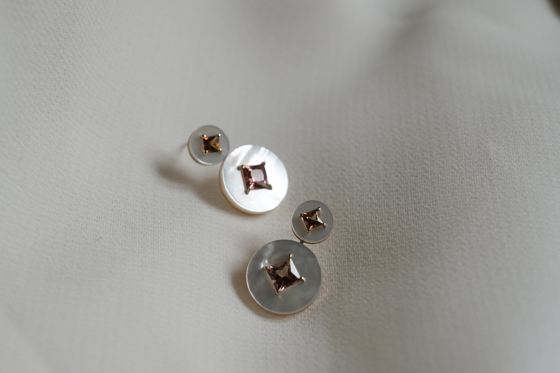 Material: pink and yellow tourmaline, mother of pearl, 18K yellow gold