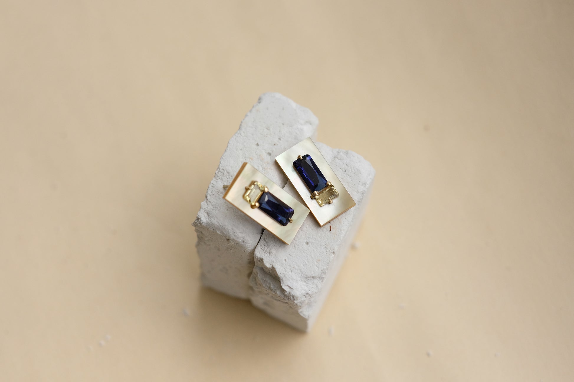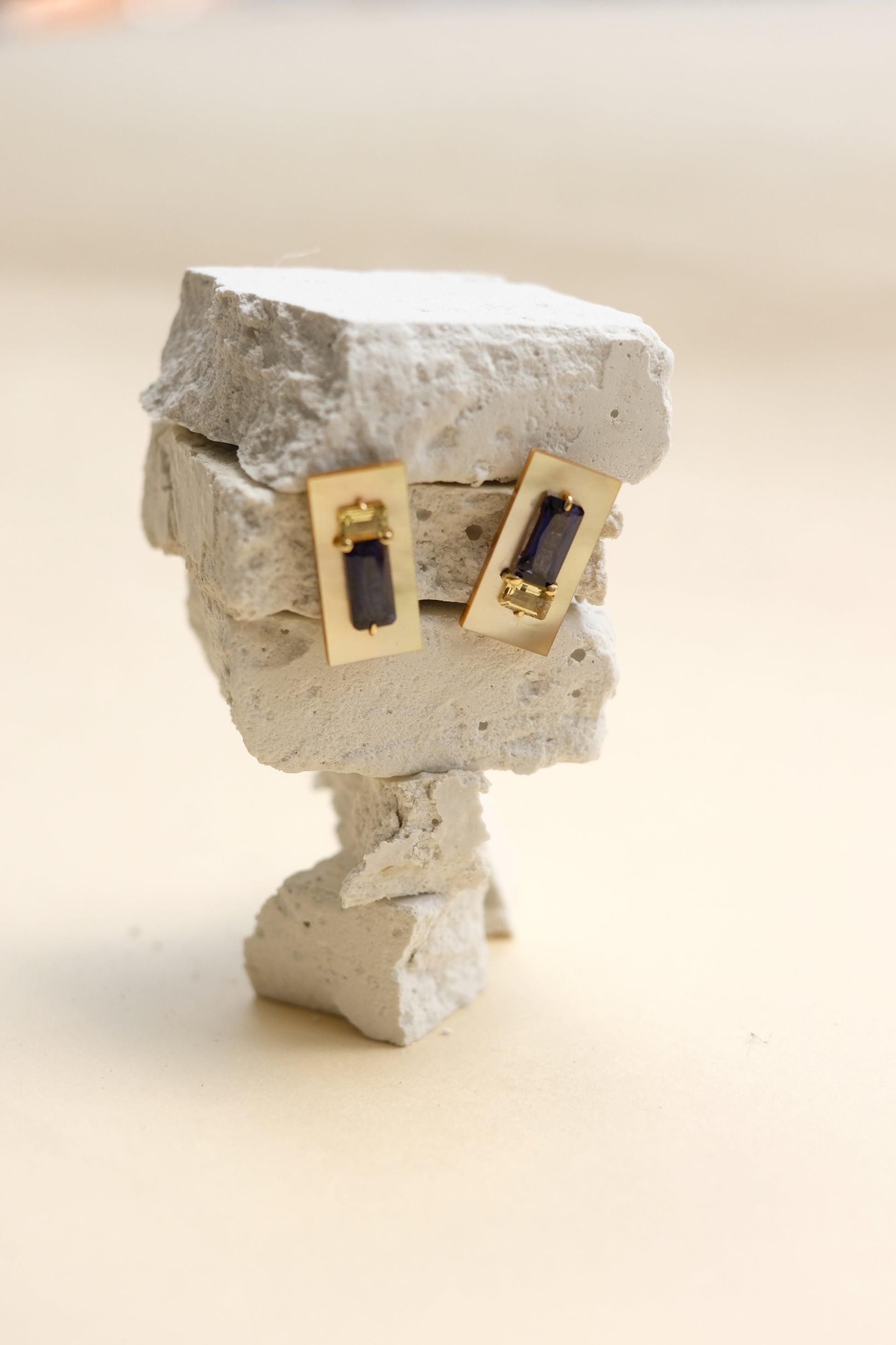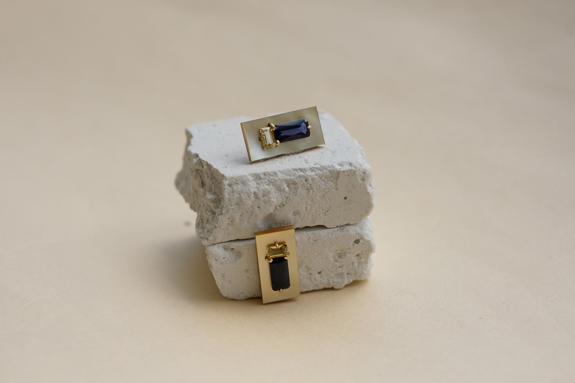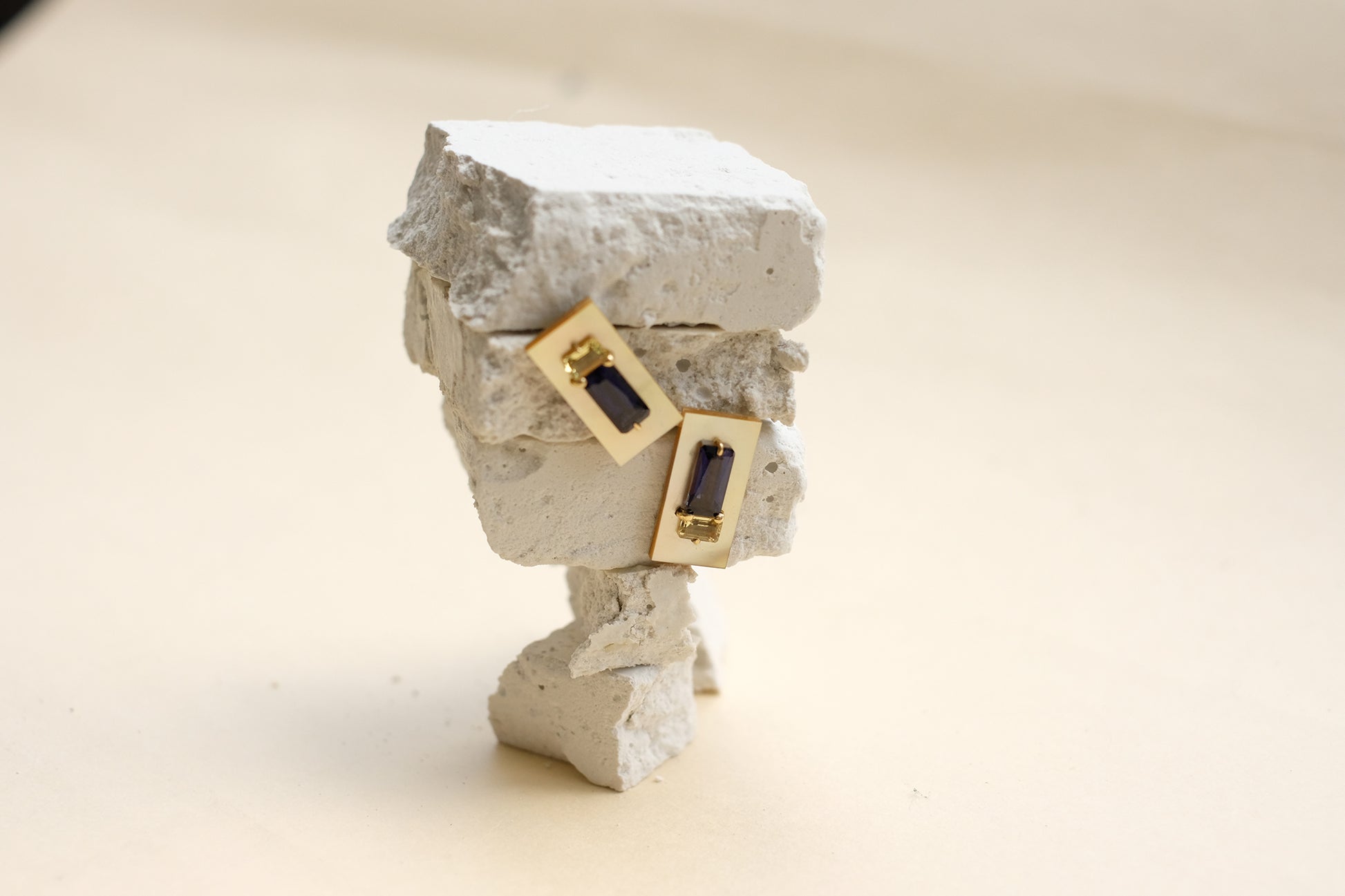Material: Iolite, beryl, mother of pearl, 18K yellow gold