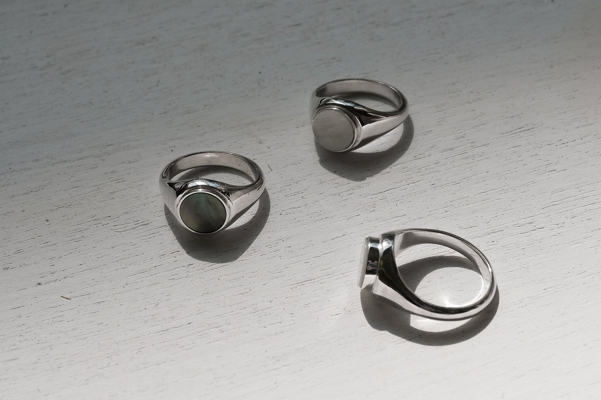 This piece is ready to ship in sterling silver and white nacre in US size 4.75 and 6. For other sizes, we will need 2-3 weeks time before the shipment. If you want to talk to us before purchase, feel free to contact us via info@belindachangjewellery.com