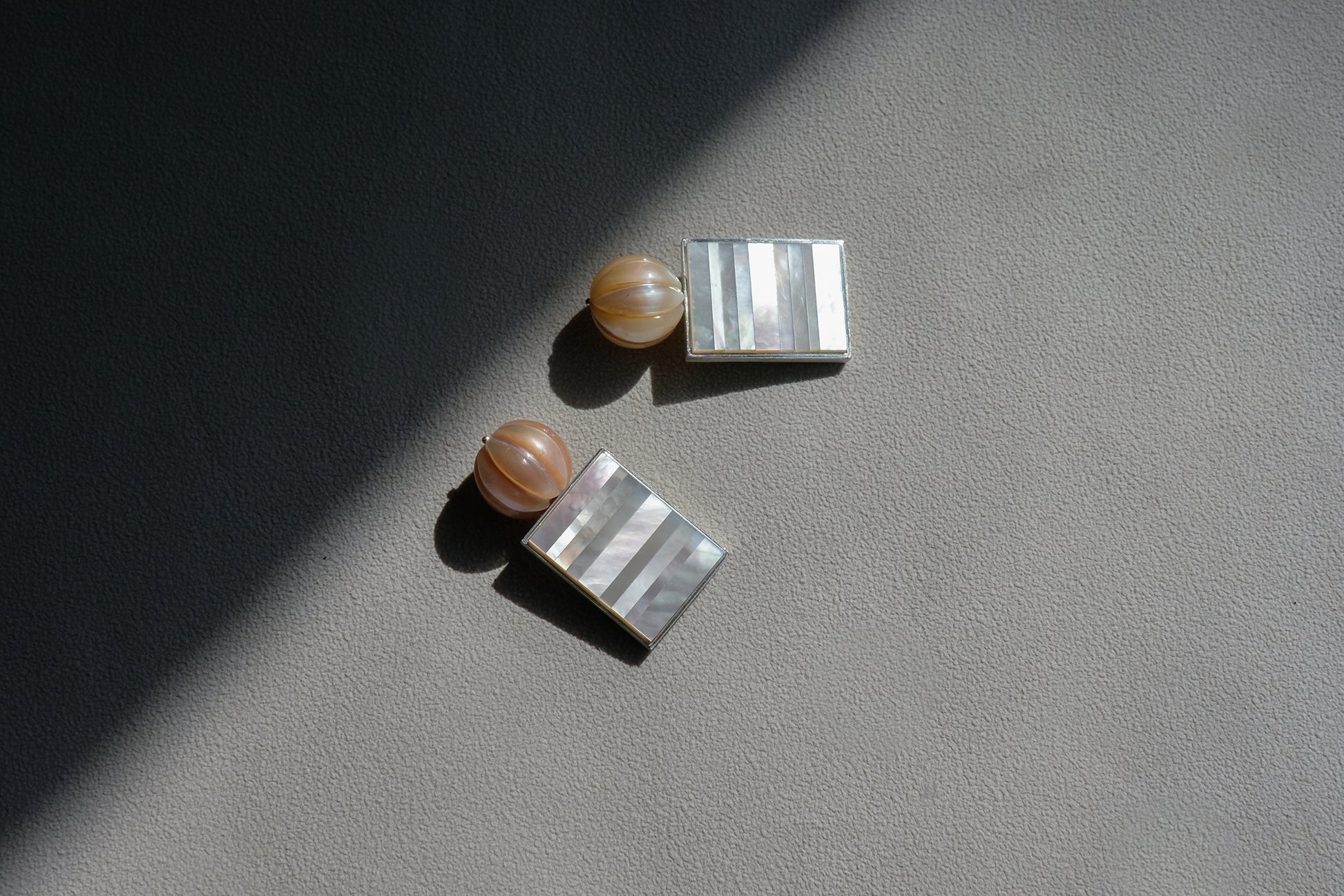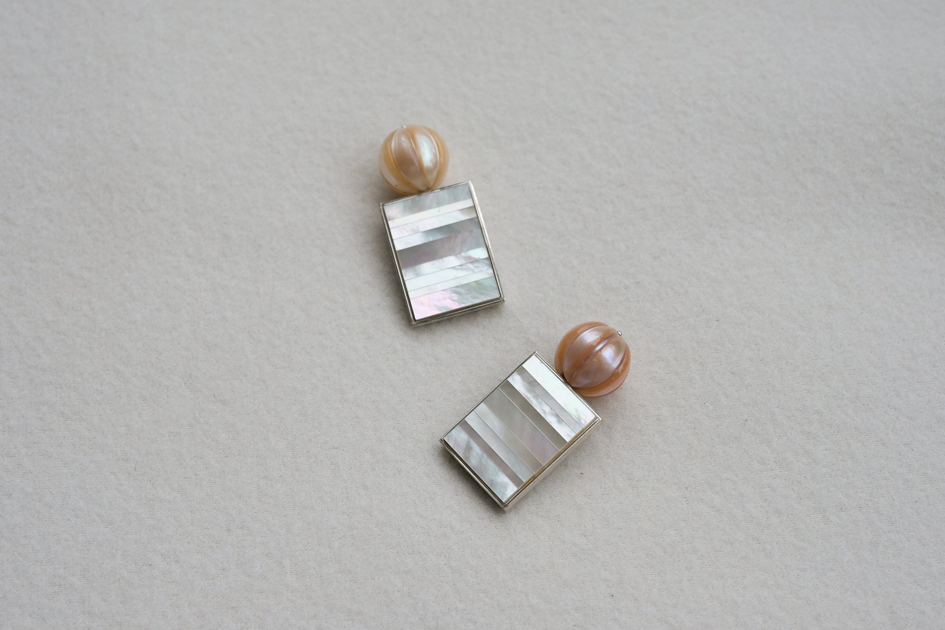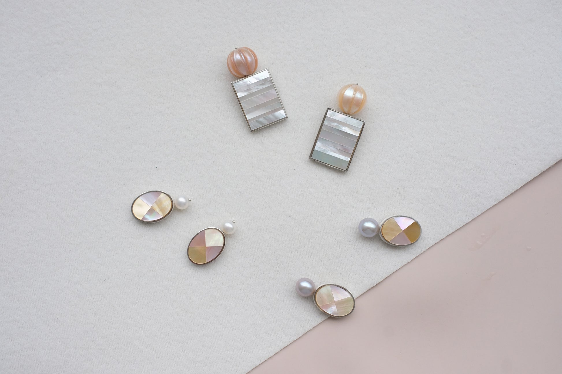 The soft lustre of mother of pearl gives this collection its signature charisma. Set on sterling silver frames, the finely polished nacre gems give off a dreamy iridescence.