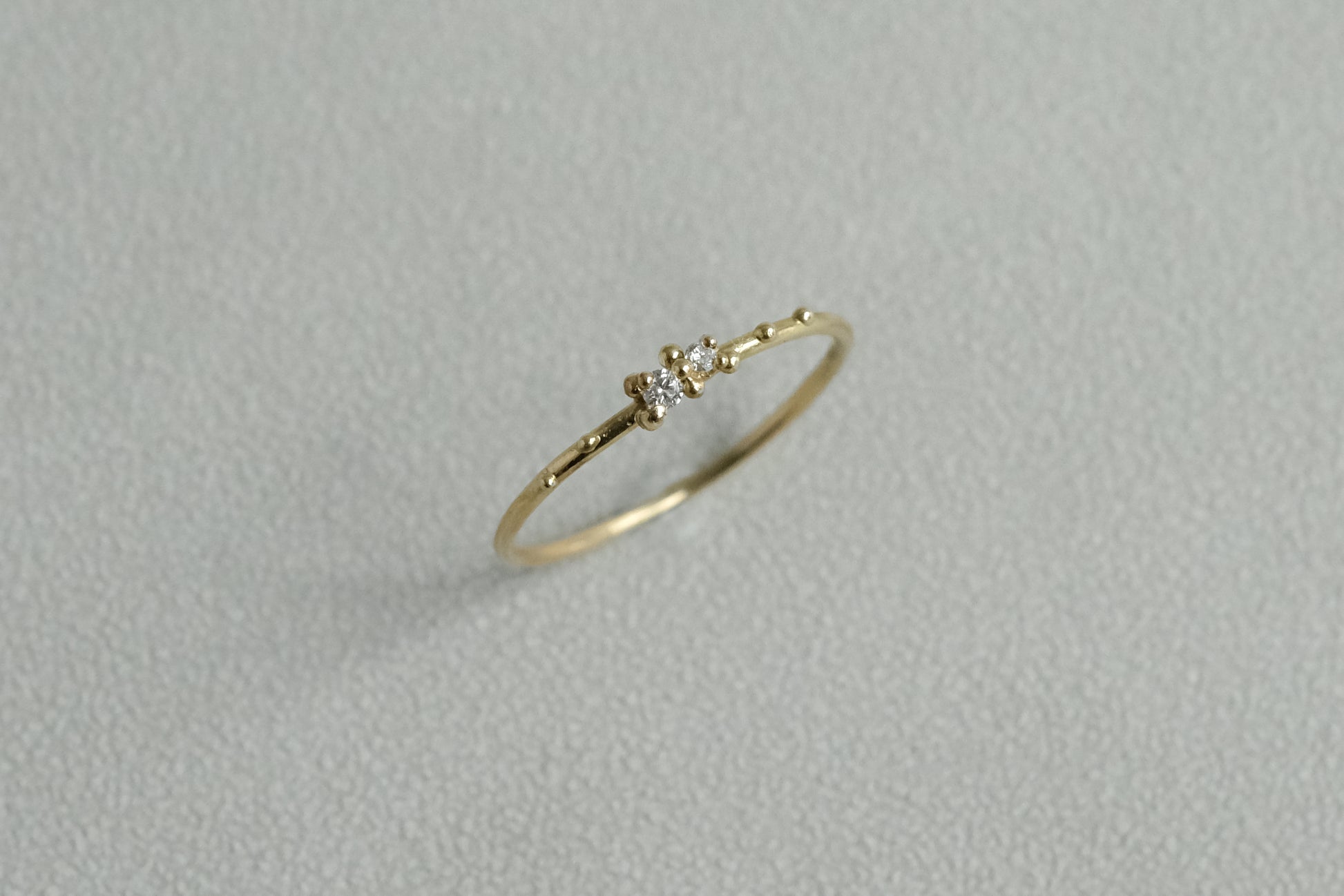 This piece in 18k yellow gold with 2 mini diamonds, US 4- is ready to ship. Newly made orders will require around 1-2 weeks of processing time before shipment. If you want to talk to us before purchase, feel free to contact us via info@belindachangjewellery.com