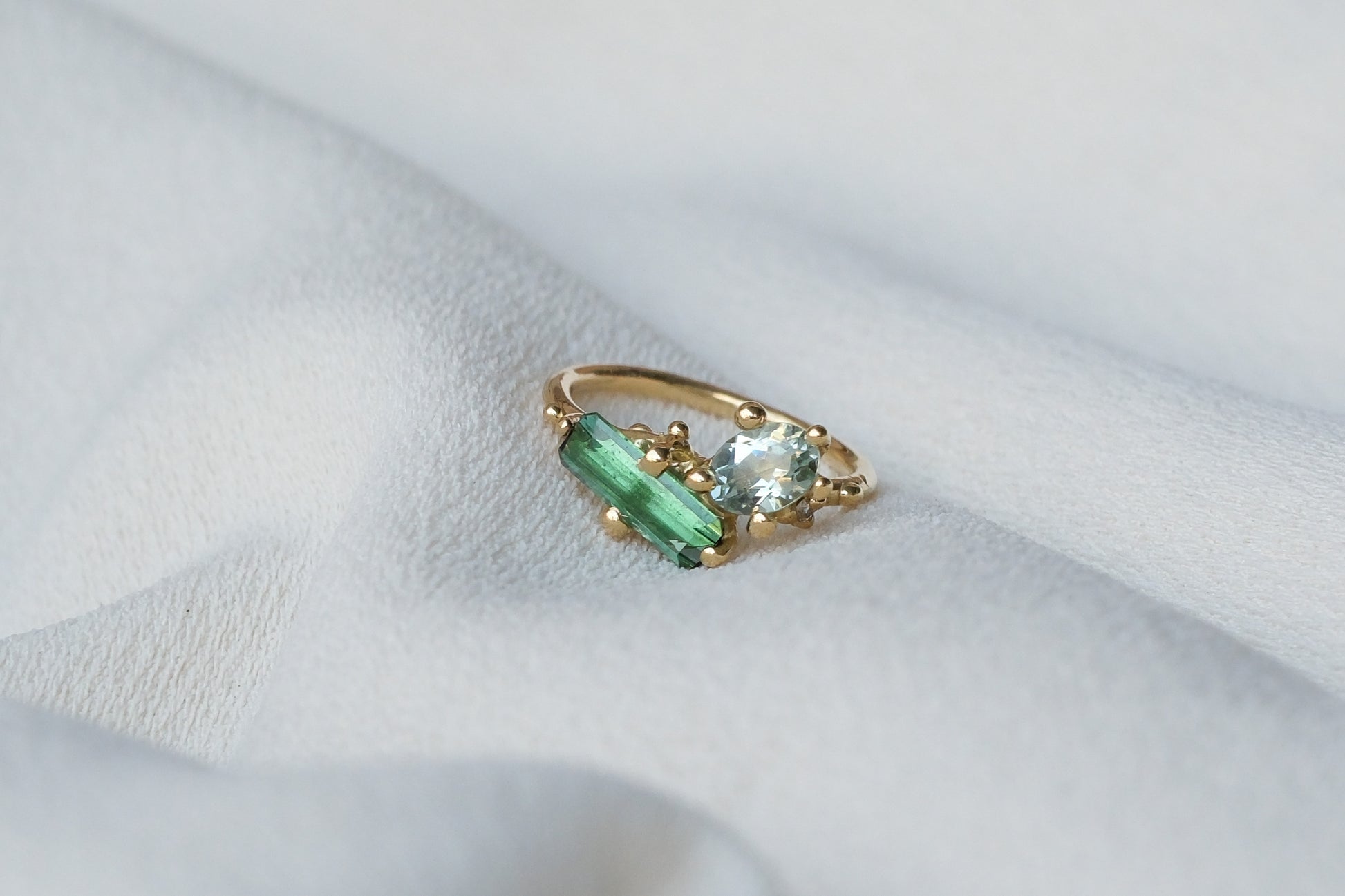 Material: 0.5ct Aquarmarine 0.97ct Green Tourmaline with 18K yellow gold