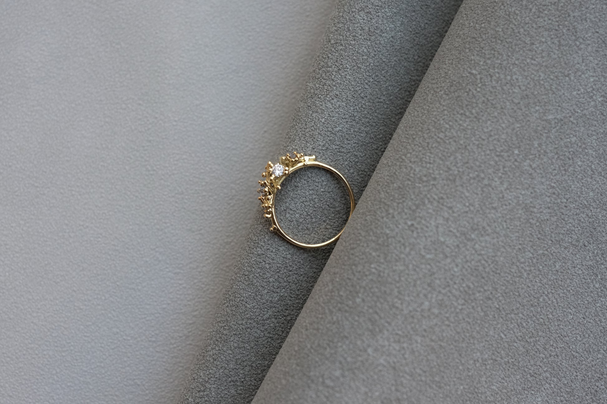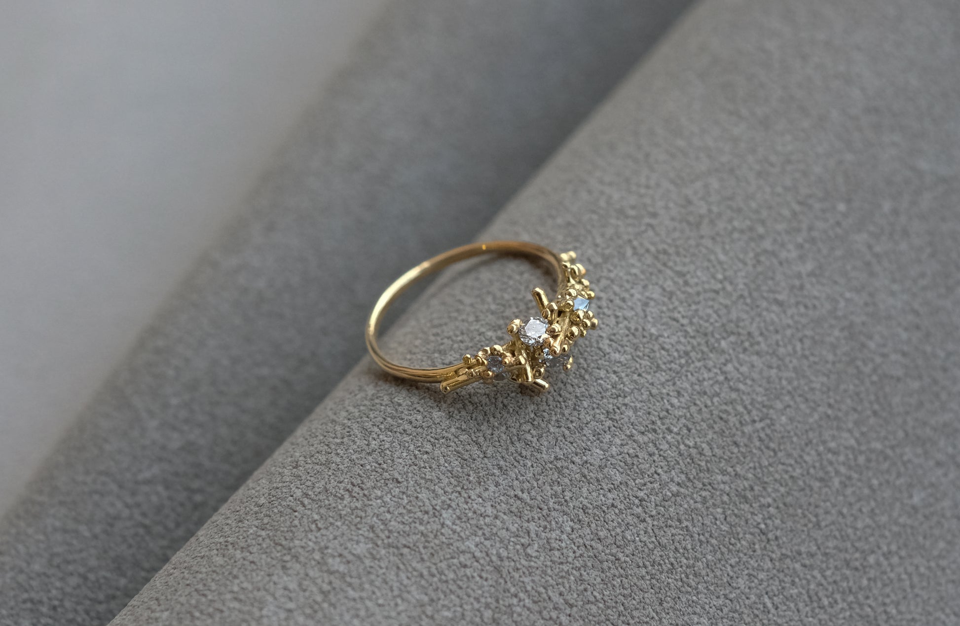The mesmerising allure of the cosmos became the muse of this collection, illustrating Belinda Chang’s vision of celestial beauty with her iconic granulated aesthetic. The last moments of celestial bodies is met with an explosion of light, the designer’s rendition of its ephemeral beauty is forged with a cluster of 18k gold beams, graced with numerous illuminating diamonds and white sapphires, thus becoming dynamic composure of Nova Ring.