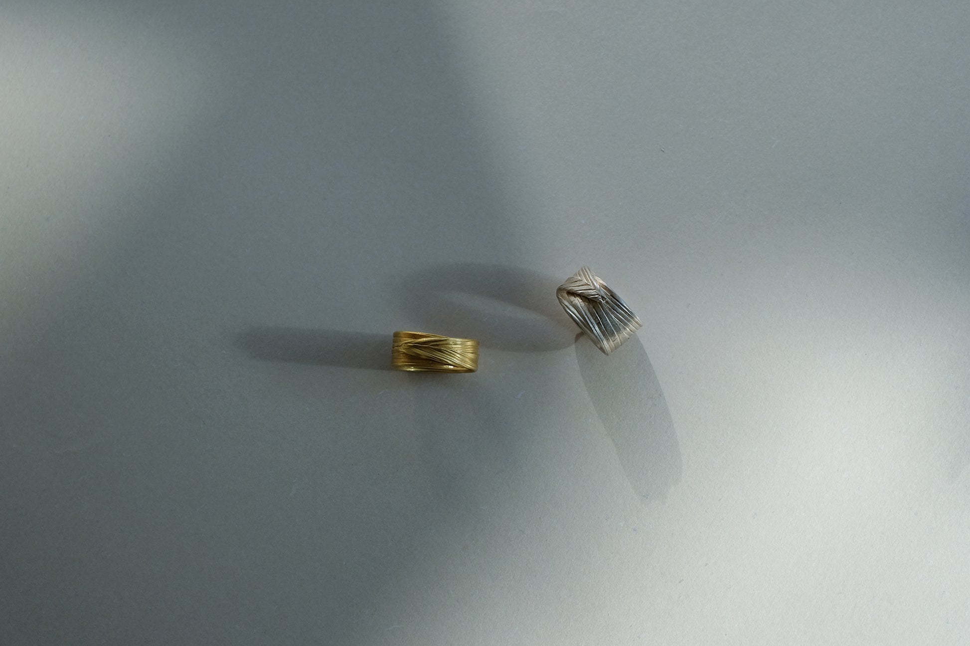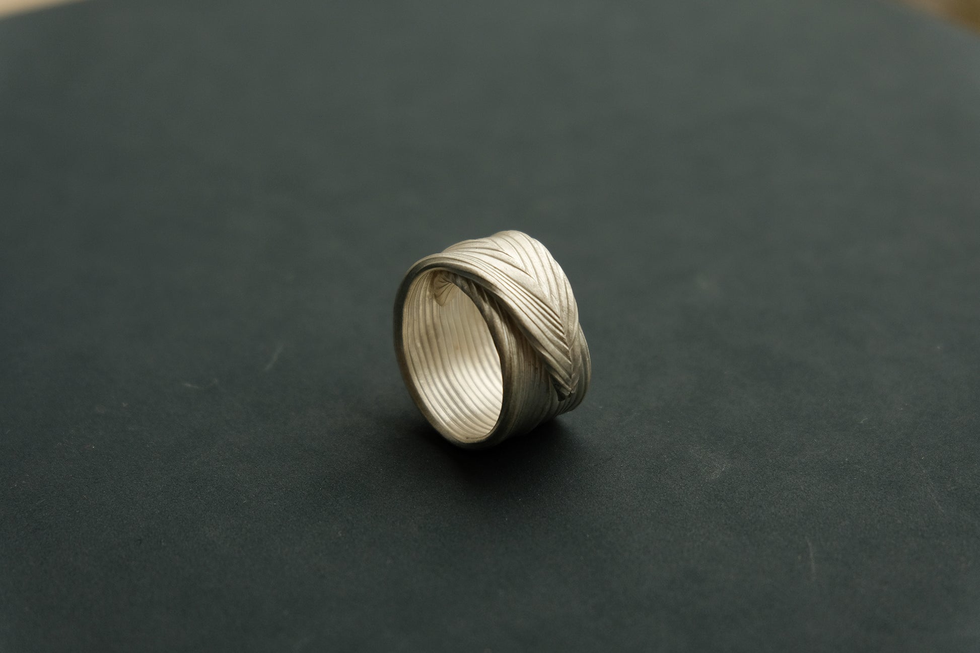 This ring, hand fabricated in fine silver, dons the linear pattern reminiscing of its namesake.