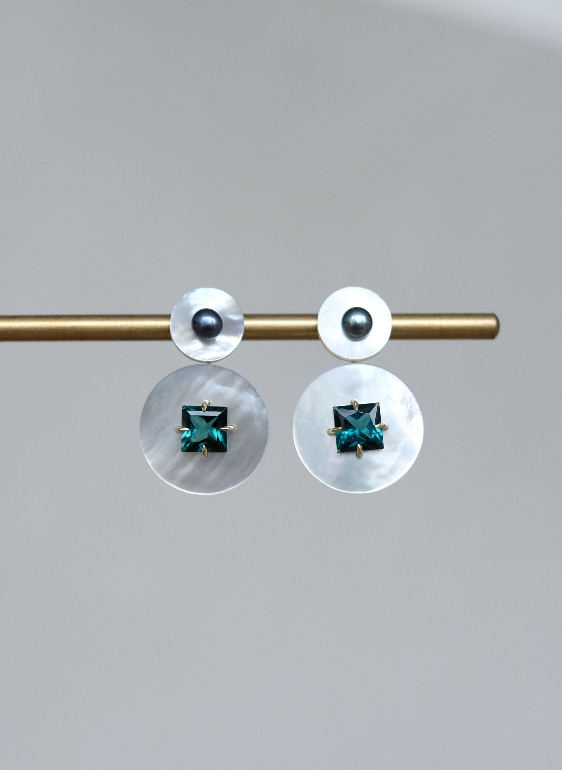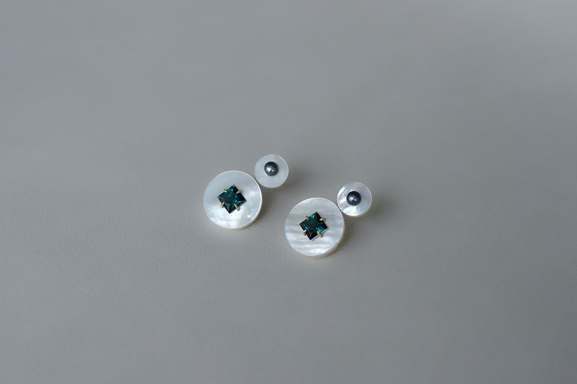 Material: tourmaline, peacock pearl, mother of pearl, 18K Yellow Gold
