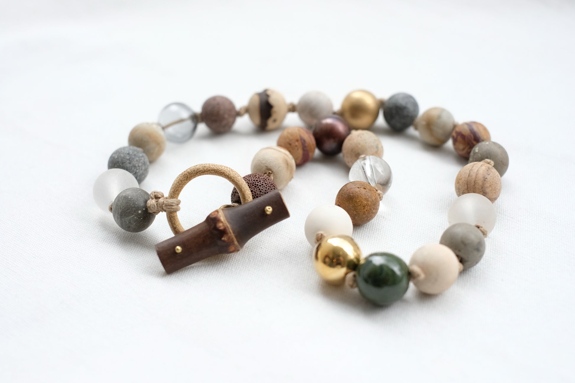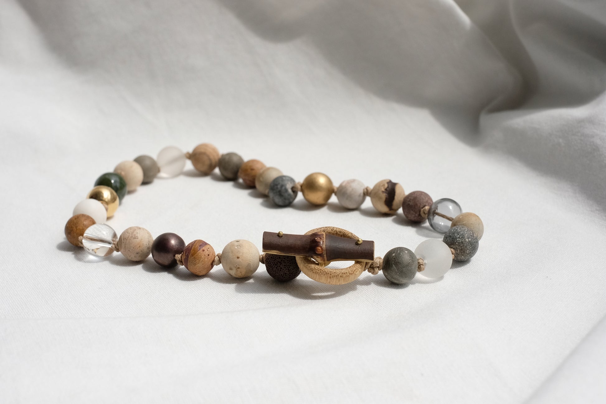 The relationship between jewellery, architecture and materialsis examined by juxtaposing the utilitarian and the ornamental. Found objects such as concrete fragments and scaffolding bamboo are made into precious conditions; fabricated into “pearls of commonality” through lapidary and jewellery- smithing techniques.