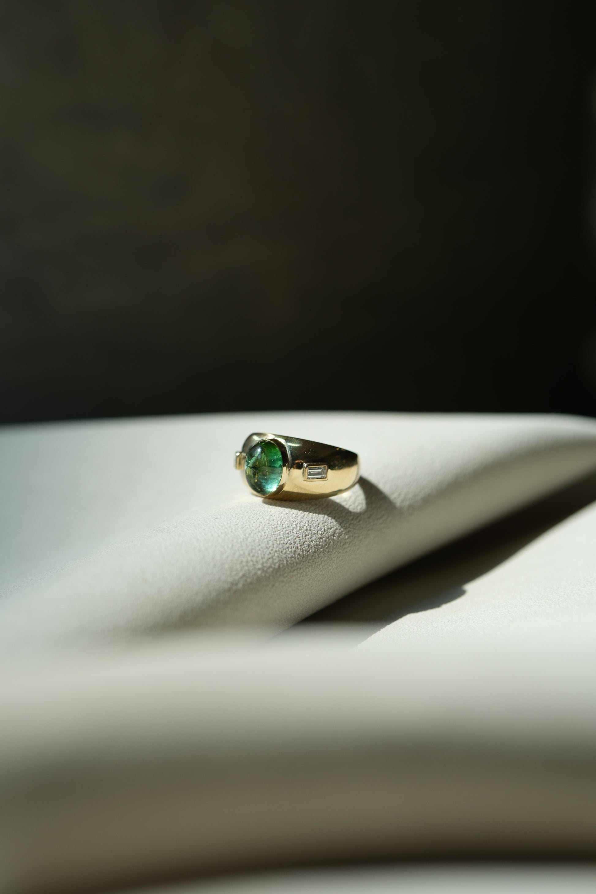 Material: Natural Diamonds, Green Tourmaline and signet ring in 18k gold