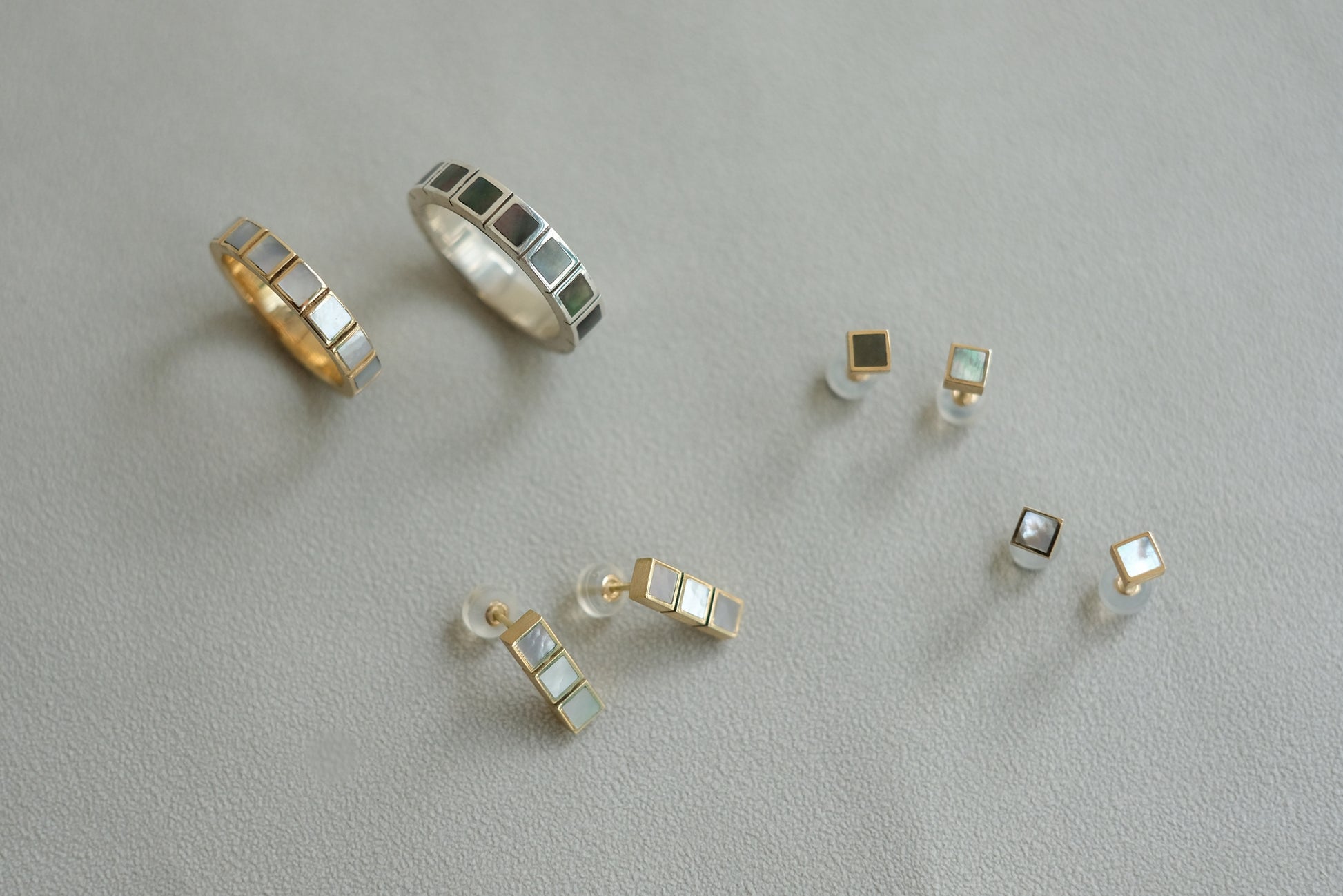 The soft lustre of mother of pearl gives this collection its signature charm. Set on 18k gold frames, the finely polished nacre gems give off a dreamy iridescence and feminine charisma to the otherwise hefty form. Amid the spectrum of lustre available to these prized jewels, the designer has carefully selected blanched pastel tones for a subtle yet elegant aesthetic.