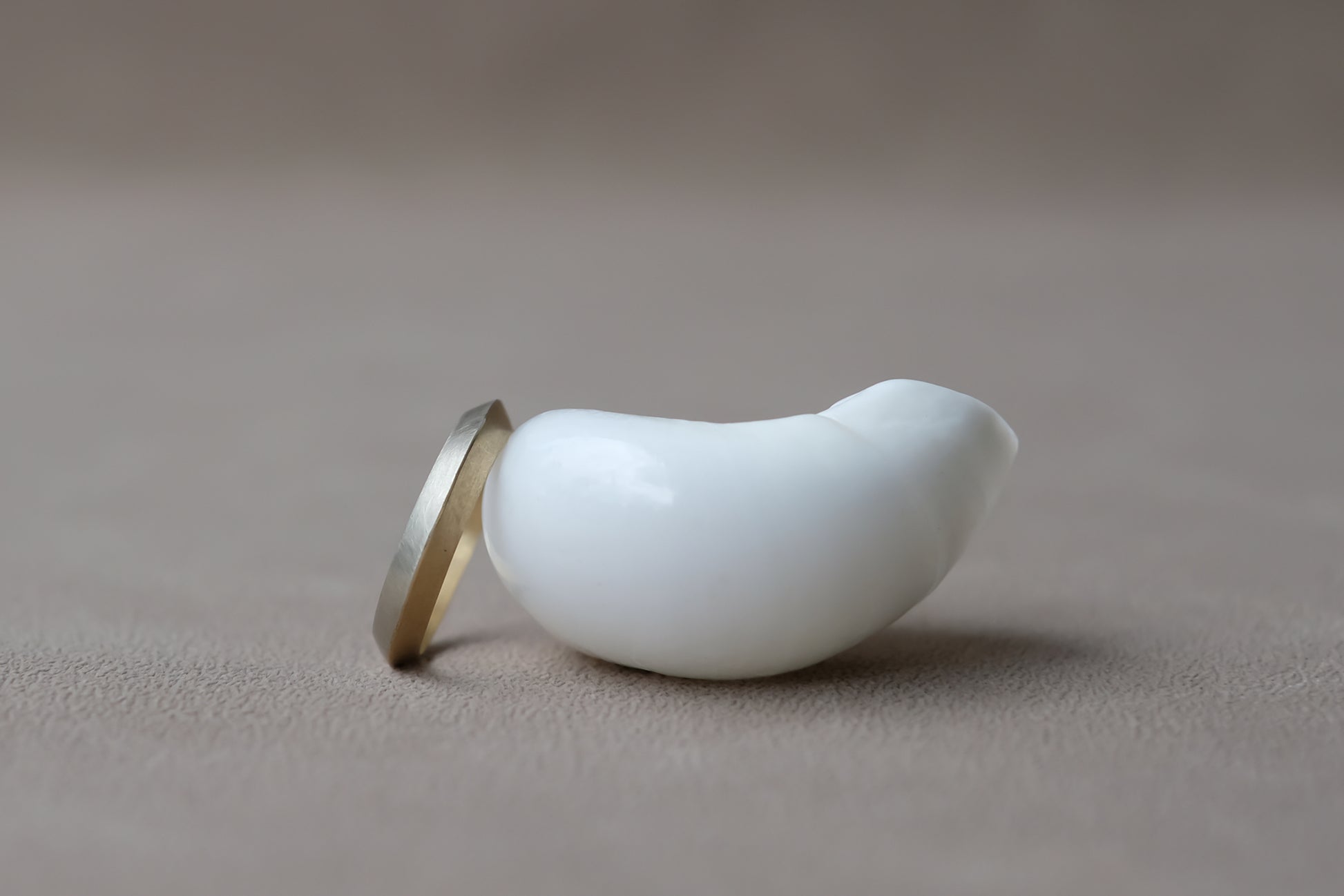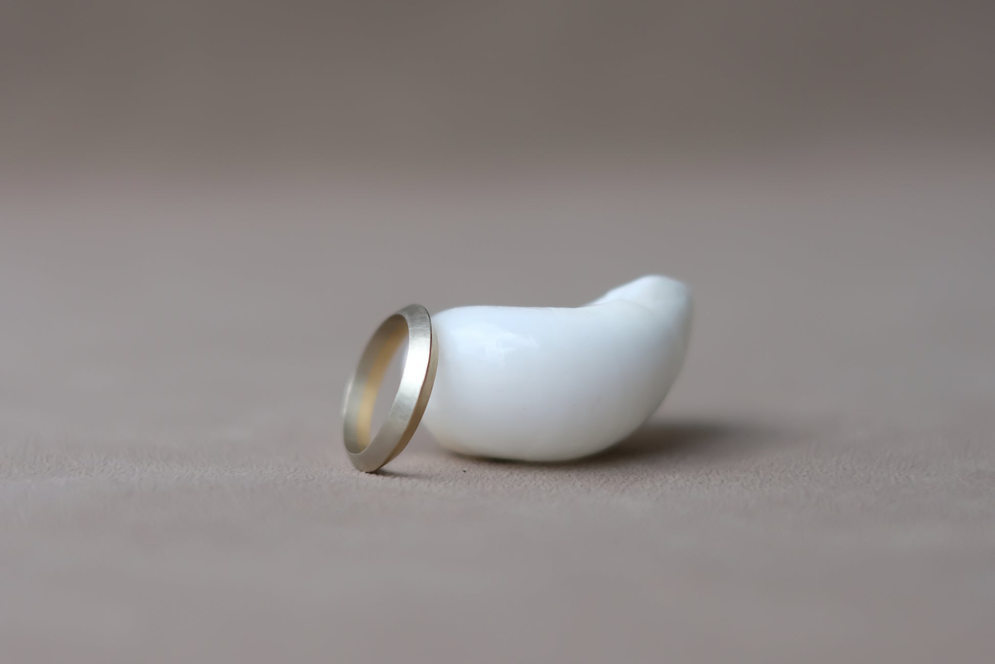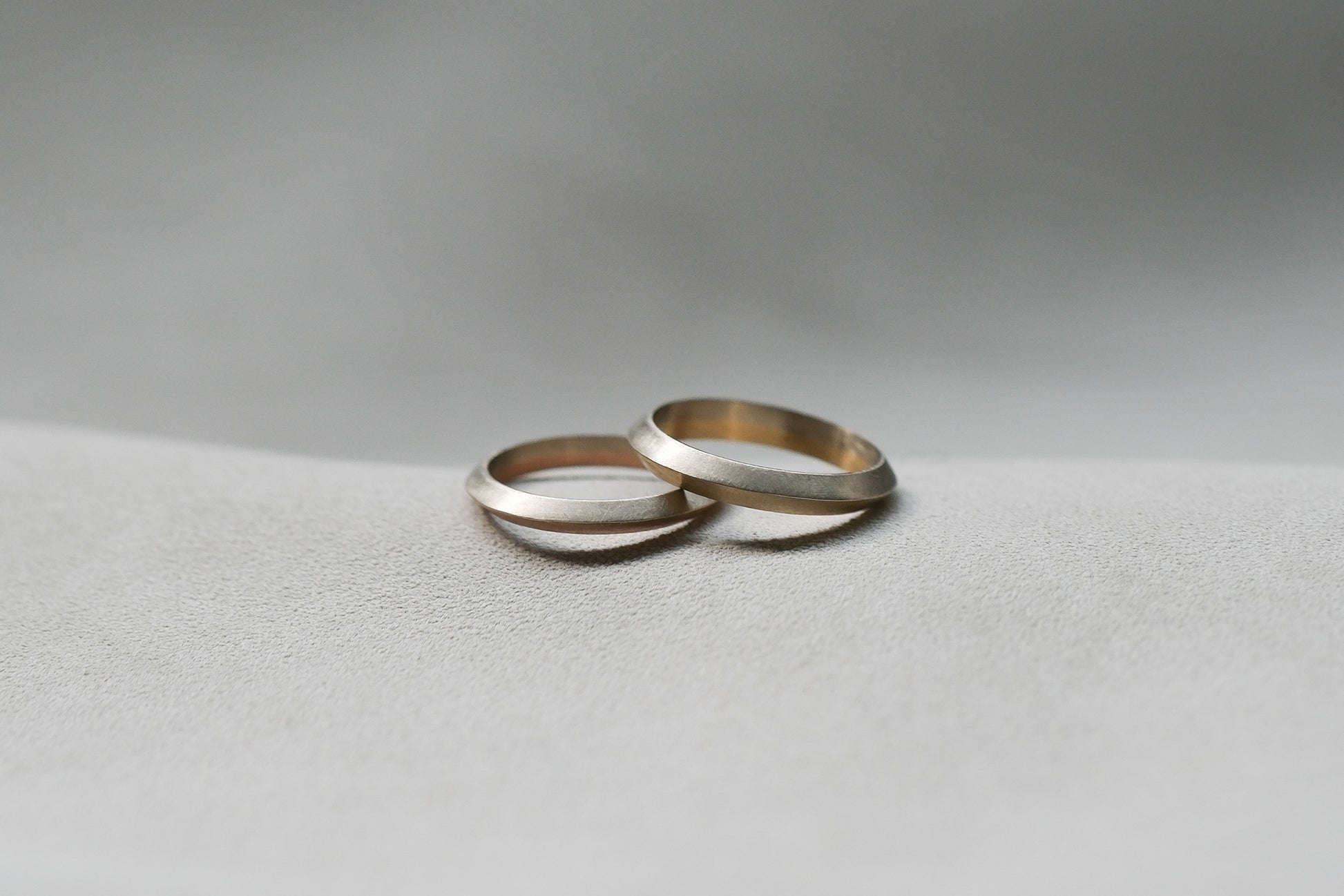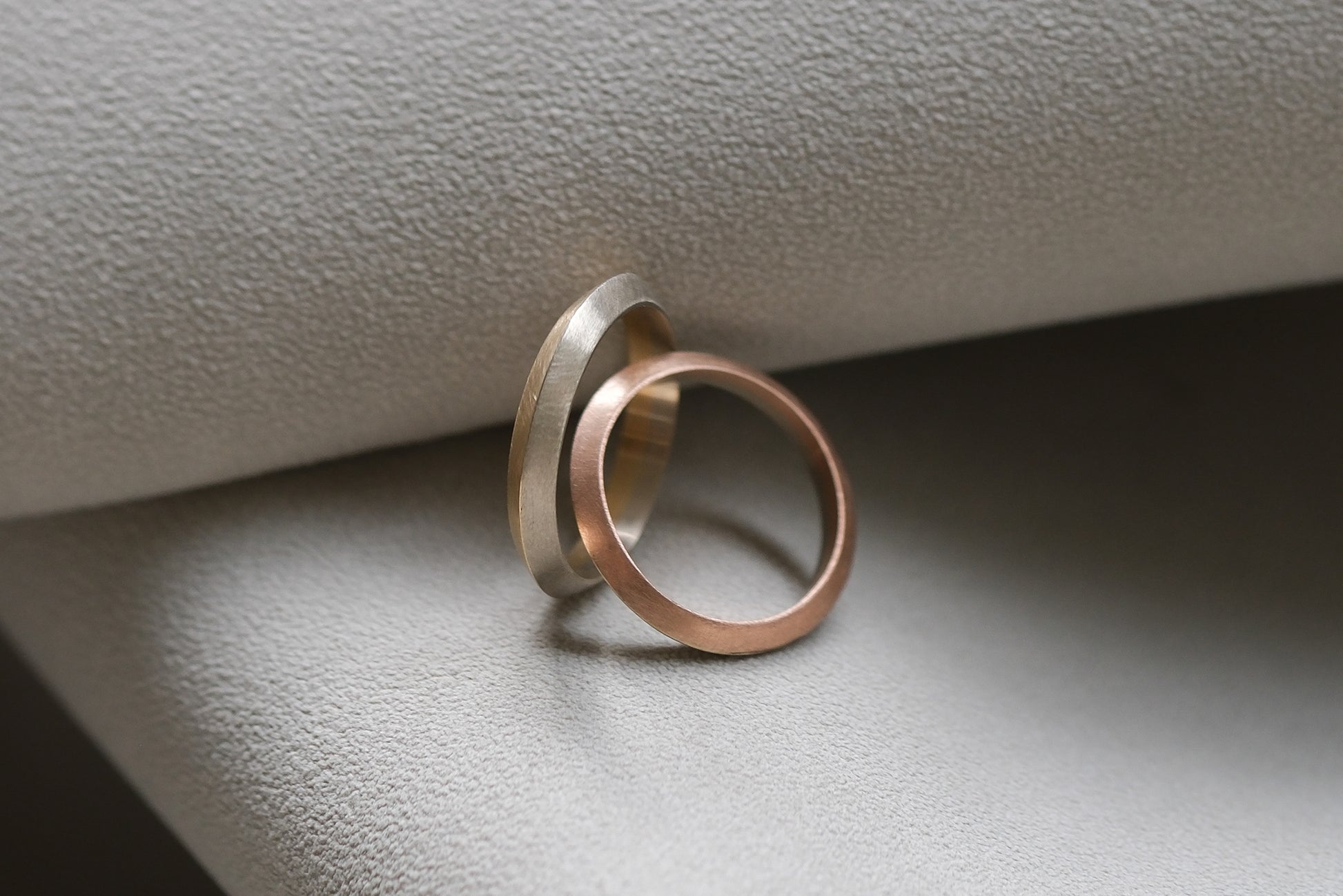 The Synergy Ring is an enchanting wedding band, featuring two shades of 18K gold triangular wire soldered together to form a prominent sharp edge. This exquisite design highlights its contemporary minimalist aesthetic, while also symbolising the remarkable power that arises when two individuals unite. Like a blade cutting through life's challenges, the sharp edge represents the collective strength and resilience of the couple.