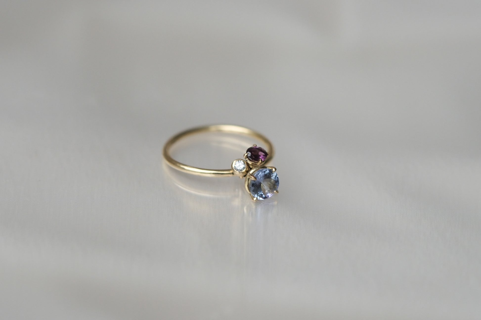 Material: 0.65ct Tanzanite, 0.19ct Almandine, Diamond with 18K yellow gold