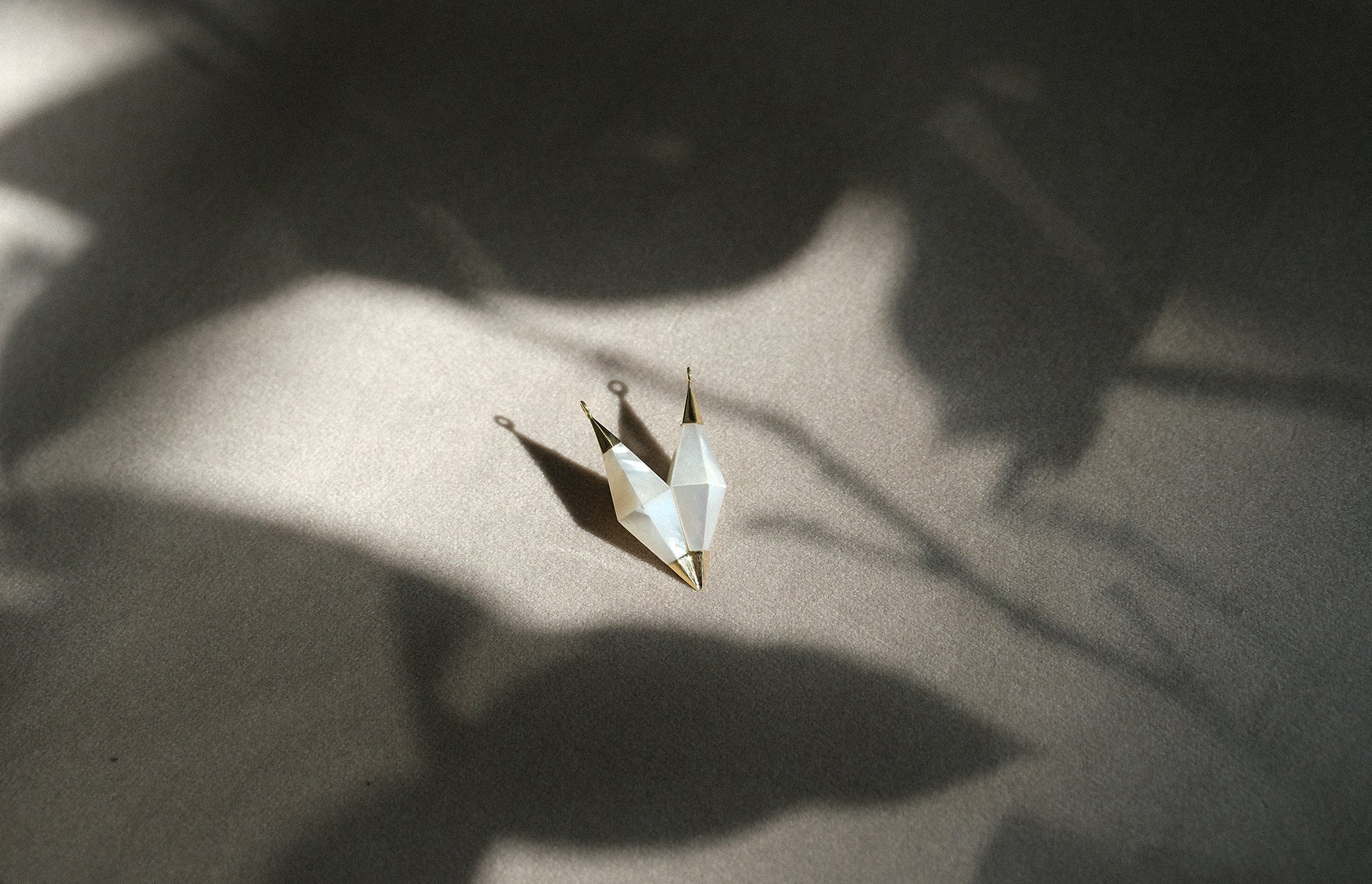 A latest creation extending from the Tarlati collection, this pendant captures the quiet elegance of white mother of pearl embraced by the warmth of yellow gold. Echoing the collection’s signature geometric precision, its delicate contours reflect an interplay of light and shadow, revealing an iridescence that speaks of love—soft yet enduring. A modern relic that carries the essence of devotion, thoughtfully crafted with timeless grace.